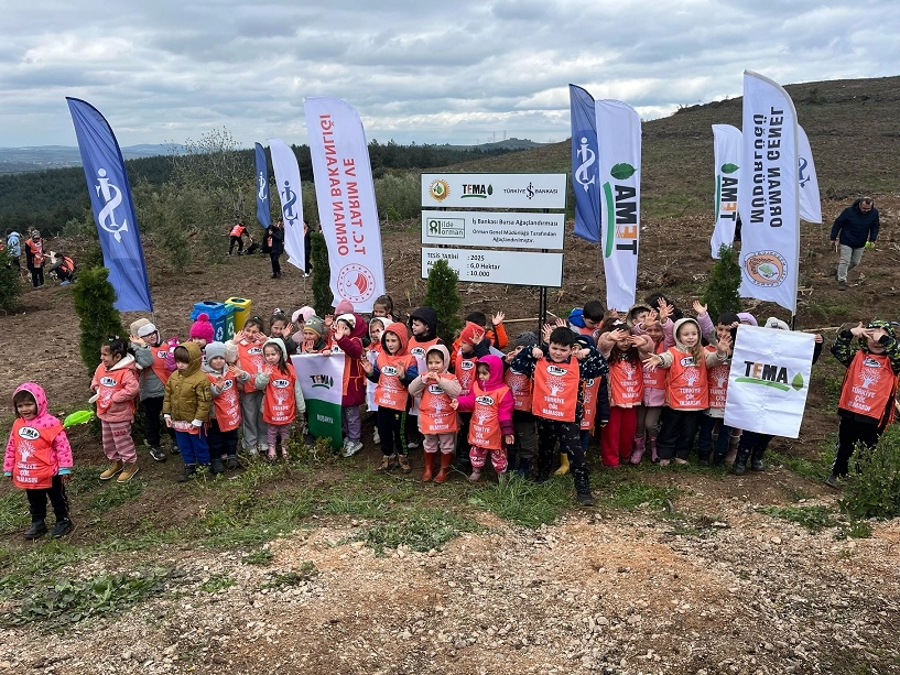 Yiğithan HÜYÜK- Memet Can YEŞİLBAŞ/BURSA, (DHA)- TÜRKİYE İş Bankası, Orman Genel Müdürlüğü ve TEMA Vakfı iş birliğiyle yeniden hayata geçirilen '81 İlde 81 Orman' projesinin dikim törenleri Bursa ile devam ediyor. Dikim töreninin gerçekleştiği 6 hektarlık alanda 10 bin fidan toprakla buluştu.Türkiye’nin dört bir yanında orman varlığını artırmayı, çevre farkındalığını güçlendirmeyi ve birçok canlıya yaşam alanı sunmayı amaçlayan proje, ilk olarak Türkiye İş Bankası, Orman Genel Müdürlüğü ve TEMA Vakfı iş birliğiyle 2008–2017 yılları arasında gerçekleştirilmişti. Türkiye İş Bankası’nın 100'nın yılı vesilesiyle 2024’te yeniden başlatılan proje kapsamında, Bursa’da bir dikim töreni yapıldı. Mudanya’da gerçekleşen törene Türkiye İş Bankası Bursa Bölge Satış Müdürü Maksut Özen, Mudanya Kaymakamı Ayhan Terzi, Mudanya İlçe Milli Eğitim Müdürü Suat Topal, Mudanya Orman İşletme Şefi Selçuk Ayyıldız, TEMA Vakfı Genel Müdür Yardımcısı Çiğdem Akça’nın yanı sıra Bursalı öğrenciler ve bölge halkı katıldı.BURSA'DA 10 BİN FİDAN TOPRAKLA BULUŞTU'81 İlde 81 Orman' projesi kapsamında, dikim töreninin gerçekleştiği ve yüzde 45’i ormanlık alanlardan oluşan Bursa’nın Mudanya ilçesindeki Altıntaş köyünde yer alan 6 hektarlık alanda 10 bin fidan toprakla buluştu. Projenin 2008-2017 yılları arasında gerçekleşen ilk aşamasında, 2009 yılında Bursa’nın Harmancık ilçesindeki Kılavuzlar köyünde 45 bin fidan dikimi yapılmıştı. Düzenli bakımı yapılan bu alanda zamanla çeşitli canlı türleriyle ekosistem gelişmeye başladı.5 YILDA, 2 MİLYON 200 BİN FİDANFidan dikimlerinin gerçekleştiği yerlerde flora ve faunanın ekolojik açıdan zenginleşmesini amaçlayan proje, ülkemizin dört bir yanında gerçekleştirilecek dikim törenleriyle devam edecek. Proje kapsamında, Türkiye’nin 81 ilinde, 5 yıl içinde, 2 milyon 200 bin fidan dikilmesi ve dikilen fidanların bakımının da 3 yıl boyunca düzenli olarak yapılması planlanıyor. Gerçekleştirilecek çalışmalarla ülkenin orman varlığı artırılmaya devam edeceği belirtildi.Yürüttükleri çalışmalar arasında ağaçlandırmanın önemli yere sahip olduğun söyleyen Türkiye İş Bankası Bursa Bölge Satış Müdürü Maksut Özen, ''Ülke ekonomisine refahına, toplumsal yaşama katkı sağlamak amacıyla 101 yıl önce yola çıkan İş Bankası bu hedef doğrultusunda eğitimden kültür sanata, spordan çevreye kadar yaşamın her alanına dokunan projelerde yer almaya devam ediyor. Sürdürülebilirlik odağında yürüttüğümüz çalışmalar arasında ağaçlandırma önemli bir yere sahiptir. Biyolojik çeşitliliğin önemli parçası olan ormanlar iklim değişikliğiyle Mücadele su ve toprak kaybının önlenmesi ve korunması hava kalitesinin iyileştirilmesi gibi birçok konuda fayda sağlıyor'' dedi.'FİDANLARIN ORMANA DÖNÜŞ ORANI YÜZDE 84' Özen, ''Aynı zamanda her ilimizde törenlere ilgi gösteren doğaseverler sayesinde de adeta bir ağaçlandırma seferberliği oluşmuştur. Fidan dikimi Tamamlanan sahalarda 5 yıl boyunca sürdürülen bakım çalışmaları sayesinde de ormana dönüş oranı yüzde 84 gibi yüksek bir oranda gerçekleşmiştir. Ülkemizin orman varlığını artırmak daha yeşil bir geleceğe katkı sunmak amacıyla yeniden başlattığımız '81 ilde 81 orman' projemizin ilk fidan dikim törenlerini geçtiğimiz yıl Samsun, Erzincan, Konya, Balıkesir ve Manisa'da gerçekleştirdik" diye konuştu.