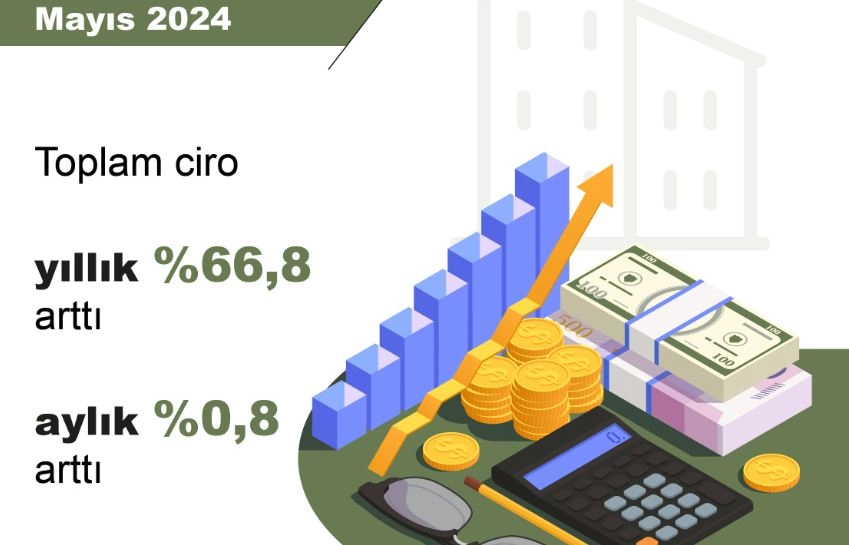 ANKARA, (DHA)- TÜRKİYE İstatistik Kurumu (TÜİK), sanayi, inşaat ve hizmet sektörleri toplam cirosunun mayısta yıllık yüzde 66,8, aylık yüzde 0,8 arttığını açıkladı. TÜİK, Mayıs 2024 dönemine ilişkin ciro endekslerini açıkladı. Buna göre; sanayi, inşaat, ticaret ve hizmet sektörleri toplamında ciro endeksi mayıs ayında yıllık yüzde 66,8 arttı. Toplam cironun alt detaylarına bakıldığında, yıllık sanayi sektörü ciro endeksi yüzde 60,4, inşaat ciro endeksi yüzde 87,4, ticaret ciro endeksi yüzde 65,1, hizmet ciro endeksi yüzde 80,6 arttı.Mayıs ayında sanayi, inşaat, ticaret ve hizmet sektörleri toplamında ciro endeksi aylık yüzde 0,8 arttı. Alt detaylarına bakıldığında, aylık sanayi sektörü ciro endeksi yüzde 1,5 arttı, inşaat ciro endeksi yüzde 5,7 arttı, ticaret ciro endeksi yüzde 0,7 azaldı, hizmet ciro endeksi yüzde 3,4 arttı. (DHA)