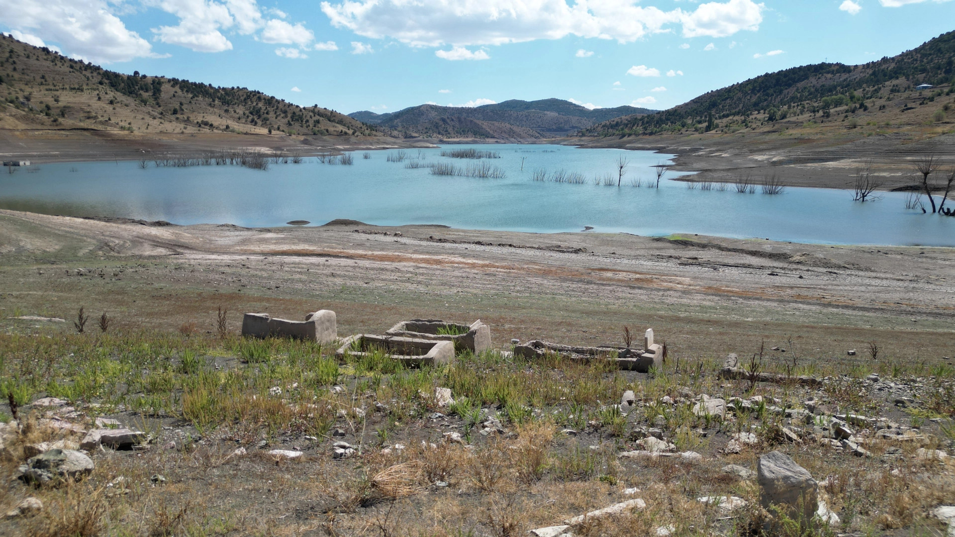 Hüsnü Ümit AVCI- Uğur YİĞİT/SİVAS, (DHA)- SİVAS'ın Hafik ilçesinde Pusat Barajı’nın suları kuraklık nedeniyle çekilince, Maden köyü ile mezarlığı 16 yıl sonra gün yüzüne çıktı. Baraja yakın Alanyurt köyünün muhtarı Celal Aksoy, "Baraj son 4 aydır yağış almadığı için baya alçaldı. Bu sene tamamen çekildi ve Maden köyü tamamen gözüktü. Hiç bu kadar düşmemişti" dedi.Hafik ilçesine bağlı Pusat, Maden ve Alanyurt köylerinin arazileri, Pusat İçme Suyu ve Sulama Barajı’nın 2002 yılında yapımının tamamlanması ve 2008 yılında su tutmasıyla su altında kaldı. Baraj nedeniyle 3 köy ise taşındı. Barajdaki su seviyesi, bu yıl Sivas'a verilen su, tarım arazilerinin sulanması ve kuraklık nedeniyle düştü. Suyun çekilmesiyle Maden köyü ile mezarlığı tamamen gün yüzüne çıktı. 16 yıldır sular altında olan köy yıllar sonra ilk defa görüldü.Baraj su tutunca bölgede yeni yerleşim yerine taşınan Alanyurt köyünün muhtarı Celal Aksoy, "Baraj son 4 aydır yağış almadığı için baya alçaldı. Bu sene tamamen çekildi ve Maden köyü tamamen gözüktü. Hiç bu kadar düşmemişti. İş nedeniyle köye çok gidip geliyordum. Tarımsal sulama, Sivas'a verilen su ve kuraklık nedeniyle su bu derecelere kadar düştü" dedi.Köylülerden Fuat Yıldız ise "Baraj 2008 yılında suyun gözü kapandığından bu zamana kadar, bu yılki kadar çekilme olmamıştı. Su altında kalan köy Maden köyüydü. Bu köy hiç bu şekilde açılmamıştı. Mezarlarında bir kısmı suyun içindeydi. Ama şu anda hepsi tamamen suyun dışında" diye konuştu. (DHA)