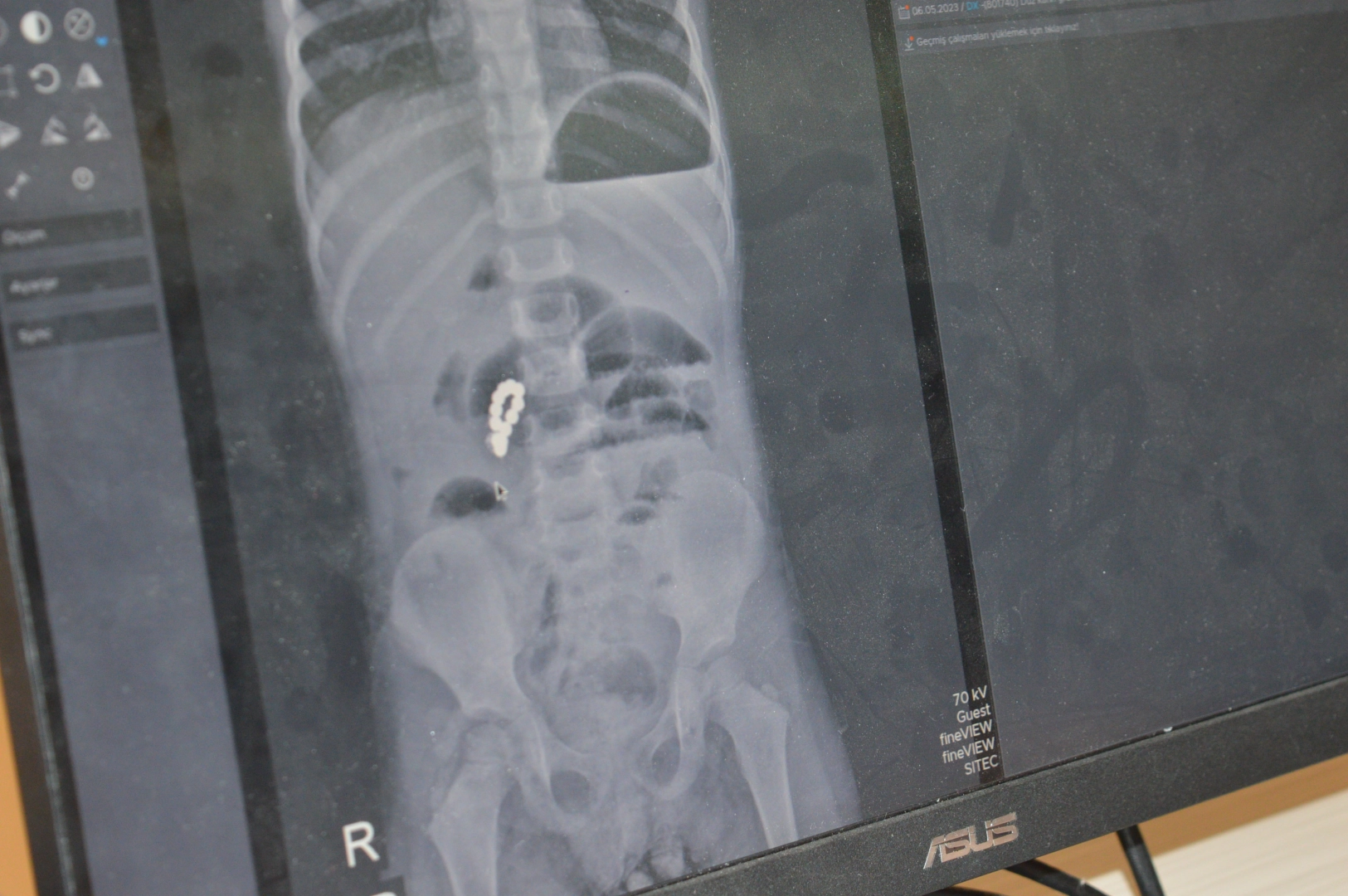 Baba İlyas Peker ise yaşadıkları süreci anlattı. Peker, “Bir hafta önce kızım sabah 5’te karın ağrısıyla annesini uyandırdı. Nusaybin Devlet Hastanesi’ne gittiğimizde bize gazı var denildi, ağrı kesici verip bizi eve yolladılar. Diğer gün öğle saatlerinde ağrısı devam etti. Tekrar hastane gittik ve röntgen çektik. Yabancı cisim yuttuğunu öğrendik ve bizi Mardin Eğitim ve Araştırma Hastanesi’ne sevk ettiler. Mürsel Hoca, hemen kızımı ameliyata aldı. Ameliyat çok uzun sürdü. Ameliyat sonrası 1,5 ay önce aldığımız ve parça parça olan mıknatıslı boncukları yuttuğunu öğrendik. Biz büyük bir hata yaptık. Ama Allah bizi korudu, kızımız kurtuldu. Ama herkes bizim kadar şanslı olmayabilir. Lütfen parçacıklı oyuncaklardan uzak durun. Doktorumuz Mürsel Hoca başta olmak üzere hastane personeline çok teşekkür ediyorum” dedi. (DHA)