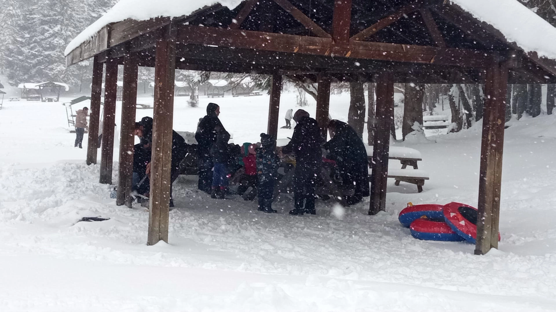 Zübeyde ÖZMEN/BOLU, (DHA)- BOLU'nun doğa harikası Abant Gölü Milli Parkı'nda kar kalınlığı, 40 santime ulaştı. Abant'a gelen ziyaretçiler, aileleriyle piknik yapıp, şambrellerle kaydı.Kentin önemli turizm merkezlerinden olan Abant Gölü Milli Parkı'nda kar etkili oldu. Yağışla birlikte kar kalınlığı, yaklaşık 40 santime ulaştı. Temiz havası ve doğal güzellikleriyle bilinen milli parkın kar manzarası da ilgi gördü. Soğuk havaya rağmen milli parka gelen ziyaretçiler, aileleriyle keyifle vakit geçirdi. Ziyaretçilerden bazıları, karda piknik yaptı, bazıları da şambrellerle kayıp eğlendi. (DHA)