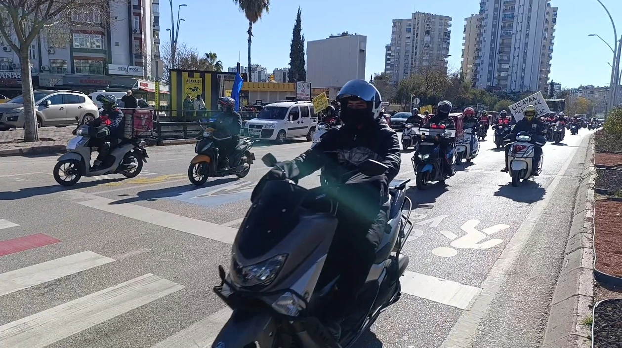 Grup adına basın açıklamasını okuyan Adana Motosikletli Kuryeler Derneği Başkanı Yalçın Parmak, yeni yılda zam almadıklarını ifade etti. Parmak, "2025 yılında aldığımız ücretlerle 2026 yılında da çalışmamız isteniyor. Firma, günlük bonusları kaldırıp paket başına yansıtarak bunu 'zam yaptık' diye sunuyor. Bu bir zam değil, açıkça kuryeyi kandırma ve emeğimizi gaspetme girişimidir. Biz robot değiliz. Hesap yapmasını bilen insanlarız. İçimizde üniversite mezunları, lisans eğitimi almış bilinçli bireyler var. Eğitimli insanları rakam oyunlarıyla kandırmaya çalışmak kabul edilemez" dedi.
