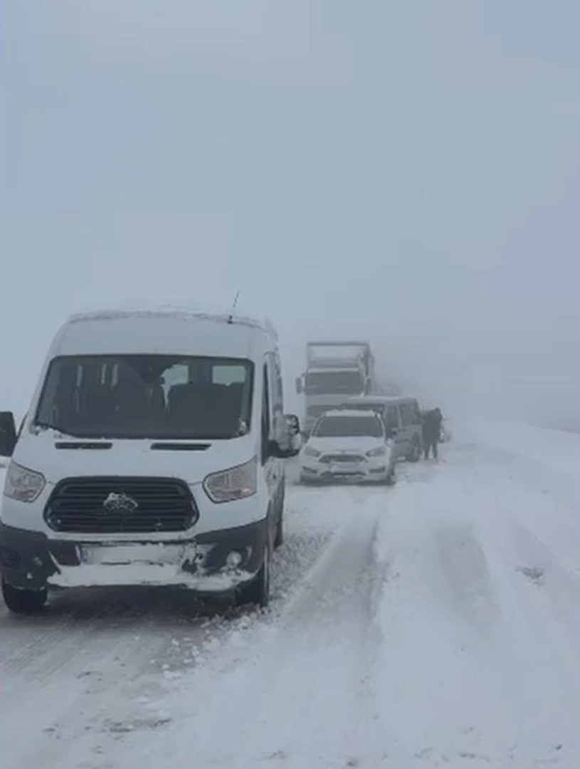 Ümit OKTAN/AĞRI, (DHA)- AĞRI ile Doğubayazıt’ı birbirine bağlayan kara yolunda, yoğun kar yağışı ve tipi nedeniyle onlarca araç yolda kaldı.