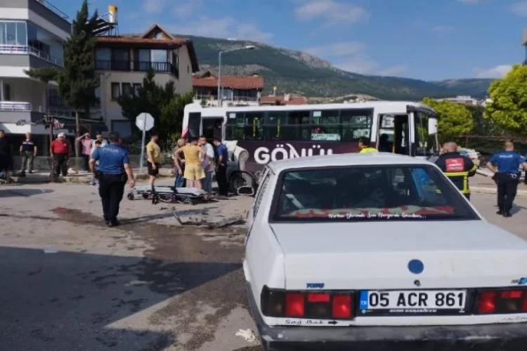 Şerife Serap KARA/AMASYA, (DHA)- AMASYA'da, kavşakta özel halk otobüsü ile otomobilin çarpıştığı kazada 5 kişi yaralandı. Kaza, güvenlik kamerasına yansıdı. Kaza, saat 11.00 sıralarında Hacılar Meydanı Mahallesi'nde meydana geldi. Asım Karaböcek yönetimindeki 05 ACR 861 plakalı otomobil, kavşaktan dönen Gürsel Sarıkaya yönetimindeki 05 HO 1061plakalı özel halk otobüsü ile çarpıştı. Çevredekilerin ihbarı üzerine kaza yerine polis, itfaiye ve sağlık ekibi sevk edildi. Kazada sürücüler ile otobüs yolcularından Ümit Fatih Ünlü, Tuba Özay ve Caner Keleş yaralandı. Yaralılar, sağlık ekiplerinin ilk müdahalesinin ardından Amasya Üniversitesi Sabuncuoğlu Şerefeddin Eğitim ve Araştırma Hastanesi'ne kaldırılarak tedaviye alındı. Bu arada kaza, güvenlik kamerasına yansıdı. (DHA)