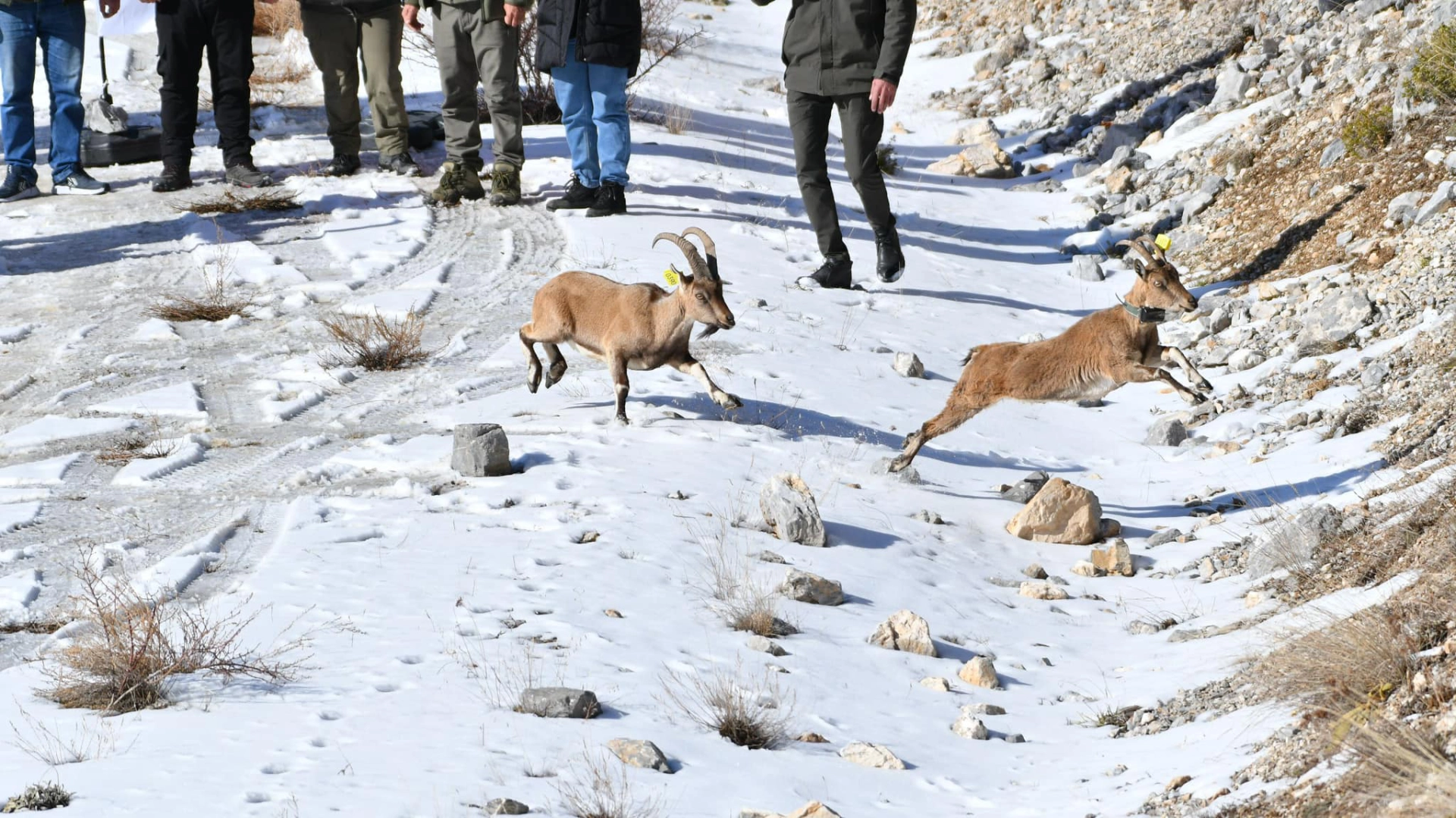 Mehmet ÇINAR/ANTALYA, (DHA)- ANTALYA'da Düzlerçamı Yaban Hayatı Geliştirme Sahası'ndan 2'si erkek, 7 yaban keçisi, Afyonkarahisar'da doğal ortama bırakıldı. Türkiye'de yaban hayatının geliştirilmesi amacıyla Doğa Koruma ve Milli Parklar (DKMP) Genel Müdürlüğü bünyesinde yürütülen çalışmalar kapsamında, Antalya'da DKMP 6'ncı Bölge Müdürlüğü'ne bağlı Düzlerçamı Yaban Hayatı Geliştirme Sahası'ndan 2'si erkek 7 yaban keçisi, Afyonkarahisar'a gönderildi. Daha önce doğal yaşam alanı olan Afyonkarahisar'da tam noktası açıklanmayan bölgede doğaya salınan yaban keçilerinin yeniden bu uygun habitatta popülasyonun artırılması hedefleniyor. DKMP 5'inci Bölge Müdürlüğü sorumluluğundaki bölgenin yeşil otlakları, yabani meyveleri, dik kayalıkları ve yıl boyu akan dereleriyle ideal yaşam alanı sunduğu belirtildi. ZARAR VERENE HEM HAPİS HEM PARA CEZASIDiğer yandan DKMP Genel Müdürlüğü'nün avlanması yasak yabani hayvanların 2024-2025 av döneminde avlanmaları halinde ödenecek tazminat bedellerine göre; yaban keçileri için belirlenen bedel 650 bin TL. Doğaya salınan bu yaban keçilerine zarar verenlere 650 bin TL tazminat, idari para cezası ve ayrıca 2 yıldan 5 yıla kadar hapis cezası uygulanacak. (DHA)