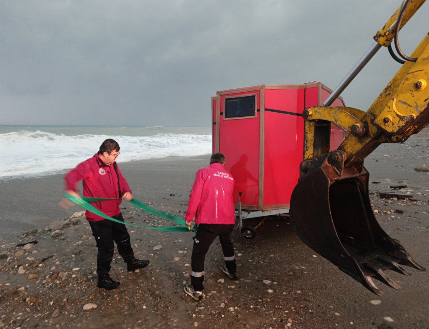 Kemer’de öğle saatlerinde şiddetini artıran sağanak hayatı olumsuz etkiledi. Ağva Deresi'nin denizle buluştuğu Çamyuva sahilindeki 2 karavan denize sürüklendi. Kemer Belediyesi Afet İşleri Müdürlüğü ve Kemer Arama Kurtarma Derneği (KEMKUT) ekipleri, Kemer Belediyesi Fen İşleri Müdürlüğü’ne ait bir kepçe yardımıyla 2 karavanı kıyıya çıkardı. Karavanın birinde mahsur kalan Rus turistler kurtarıldı. Diğer karavanda ise kimse olmadığı görüldü. (DHA)