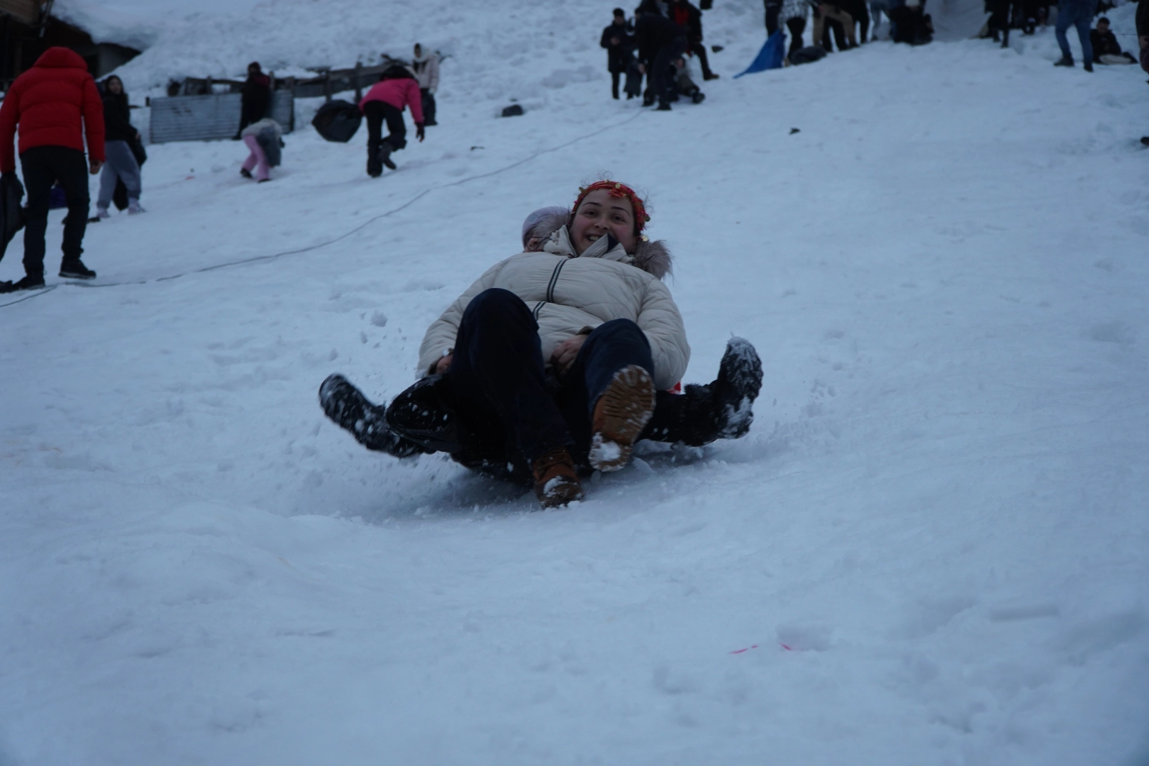 Cevahir TOPALOĞLU/ÇAMLIHEMŞİN (Rize), (DHA)- RİZE'nin Çamlıhemşin ilçesine bağlı Ayder Yaylası'nda bu yıl 18'incisi düzenlenen geleneksel 'Ayder Kardan Adam Kış Festivali’nin ikinci günü de renkli anlara sahne oldu. Festivale gelenler, yaklaşık 75 metrelik doğal kayak pistinde poşetlerle kayarak, kışın keyfini çıkardı.