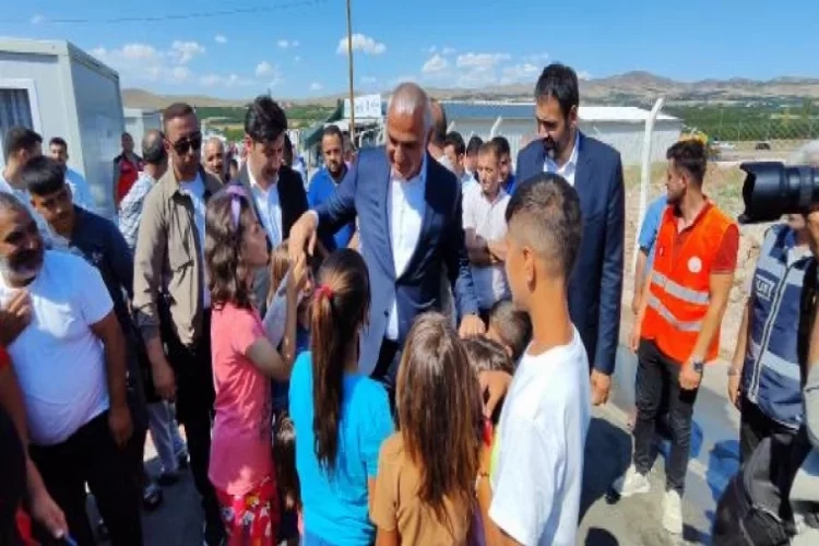 Taha AYHAN/MALATYA, (DHA)- KÜLTÜR ve Turizm Bakanı Mehmet Nuri Ersoy, depremin vurduğu Malatya'da vatandaşlarla bayramlaştı. Kültür ve Turizm Bakanı Mehmet Nuri Ersoy, Kahramanmaraş merkezli depremden etkilenen Malatya'ya geldi. Hz. İmam Zeynel Abidin Türbesi Kültür Vakfı'nı ziyaret eden Bakan Ersoy, türbede dua eden, ziyaretçilerle bayramlaştı. Bakan Ersoy, daha sonra Malatya Valiliği ziyaretinde LGS'de Tam Puan alan 4 öğrenciye çeşitli hediyeler verdi. Zor şartlar altında böyle bir başarının önemli olduğunu ifade eden Bakan Ersoy, çocukları tebrik etti. Bakan Mehmet Nuri Ersoy, bayramlaşma programı kapsamında konteyner kenti de ziyaret etti. Kültür ve Turizm Bakanlığı tarafından kurulan konteyner kent ile Teknokent konteyner kentte depremzedeleri ziyaret edip bayramlaşan Bakan Ersoy, çay ikramlarını ise geri çevirmedi. Depremzedelerle bir süre sohbet eden Bakan Ersoy, konteyner kentlerde oluşturulan iş yerlerini de gezdi. (DHA)