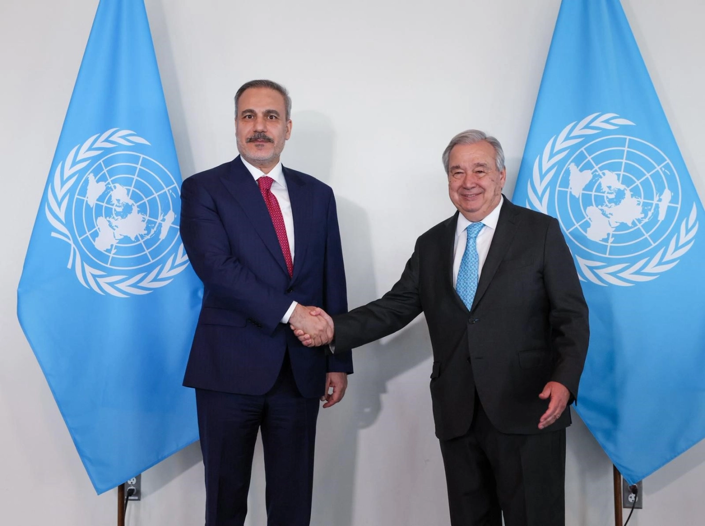 ABD, (DHA) - DIŞİŞLERİ Bakanı Hakan Fidan, Kıbrıs Gayrıresmi Toplantısı vesilesiyle BM Genel Merkezi’nde düzenlenen akşam yemeğine katıldı.Dışişleri Bakanı Hakan Fidan, Kıbrıs Gayrıresmi Toplantısı vesilesiyle New York’taki Birleşmiş Milletler (BM) Genel Merkezi’nde düzenlenen resmi akşam yemeğine katıldı. Bakan Fidan, BM Genel Sekreteri Antonio Guterres tarafından karşılandı.