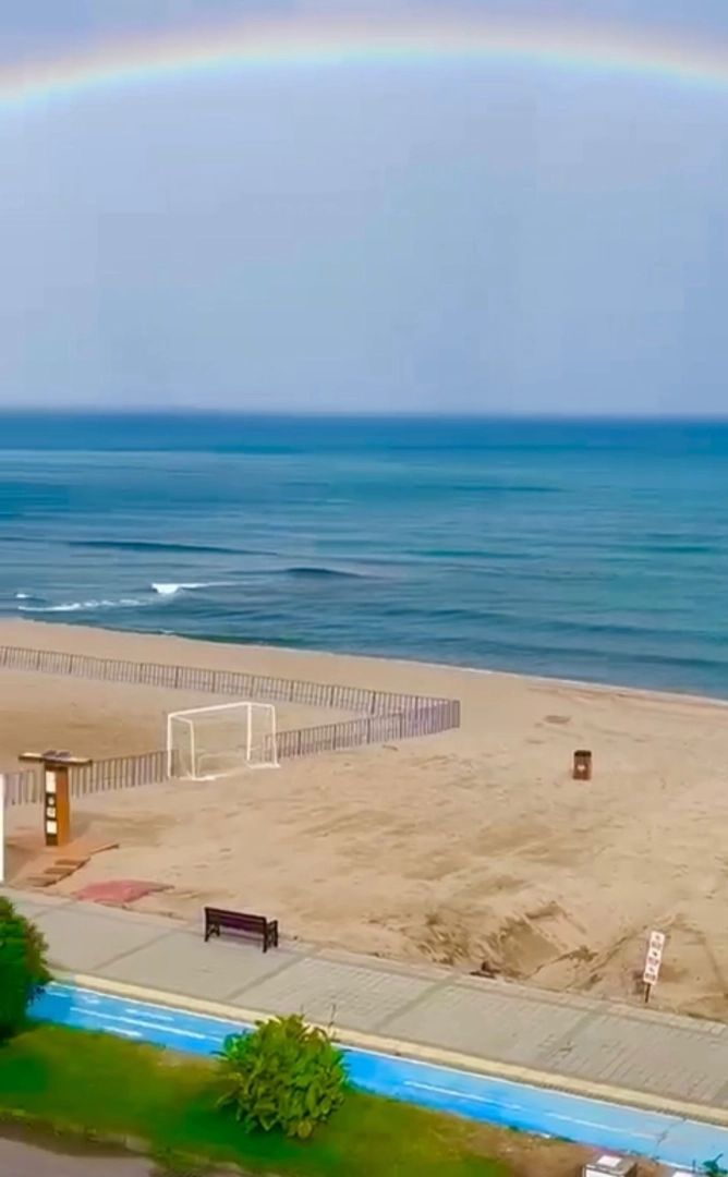 Ayhan ACAR/BARTIN, (DHA)- BARTIN'ın mavi bayraklı plajı olan İnkumu'nda yağmur sonrası güneşin çıkmasıyla deniz üzerinde gökkuşağı oluştu.Kent genelinde sabah başlayan yağmur, öğle saatlerinde yerini güneşli havaya bıraktı. Güneşin çıkmasıyla Bartın'ın tek mavi bayraklı plajı İnkumu'nda, deniz üzerinde gökkuşağı oluştu. Gökkuşağındaki renk cümbüşü, güzel görüntü ortaya çıkardı. Vatandaşlar, gökkuşağını cep telefonlarıyla görüntüleyip, sosyal medya hesaplarında paylaştı. Yaklaşık 15 dakika boyunca deniz üzerinde gözlenebilen gökkuşağı, daha sonra kayboldu. (DHA)