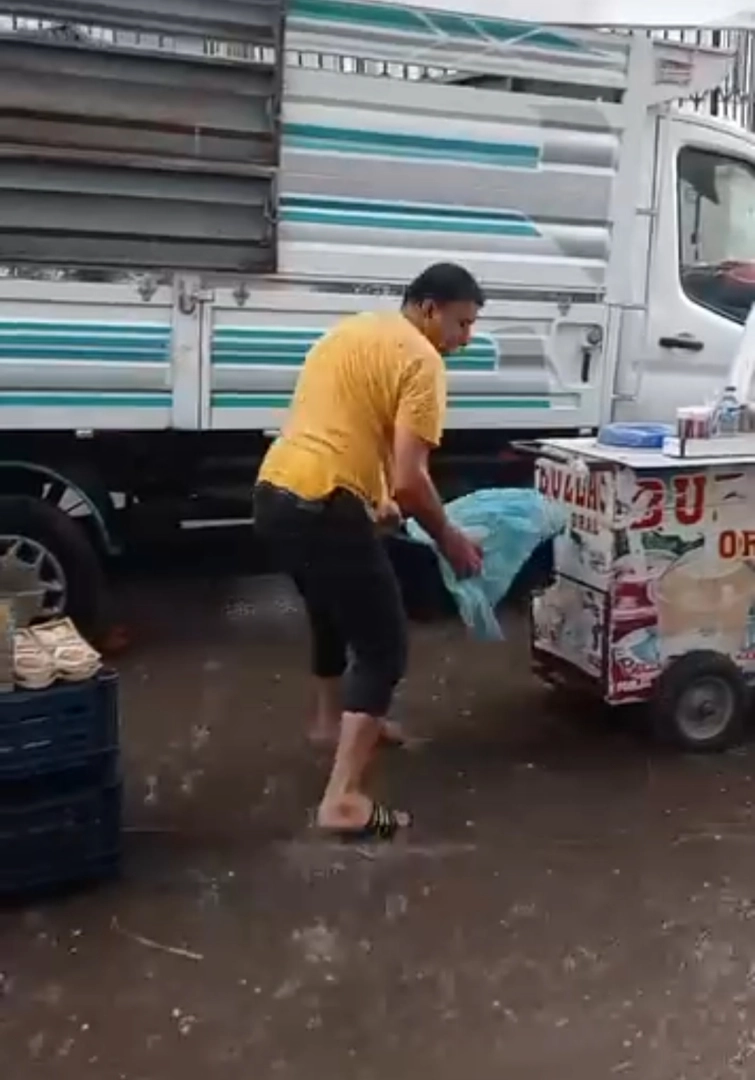 Bayram AYHAN/BATMAN, (DHA)- BATMAN'da etkili olan sağanak ve dolu yaşamı olumsuz etkiledi. Yağış sırasında pazarcı esnafı, zor anlar yaşadı.Batman'da meteoroloji 15. Bölge Müdürlüğü’nün uyarısının ardından sağanak ve dolu yağışı etkili oldu. Yağışa hazırlıksız yakalananlar zor anlar yaşadı. Pazarcı esnafı da ürünlerini korumak için yoğun çaba gösterdi. O anlar cep telefonu kamerasına yansıdı. (DHA)