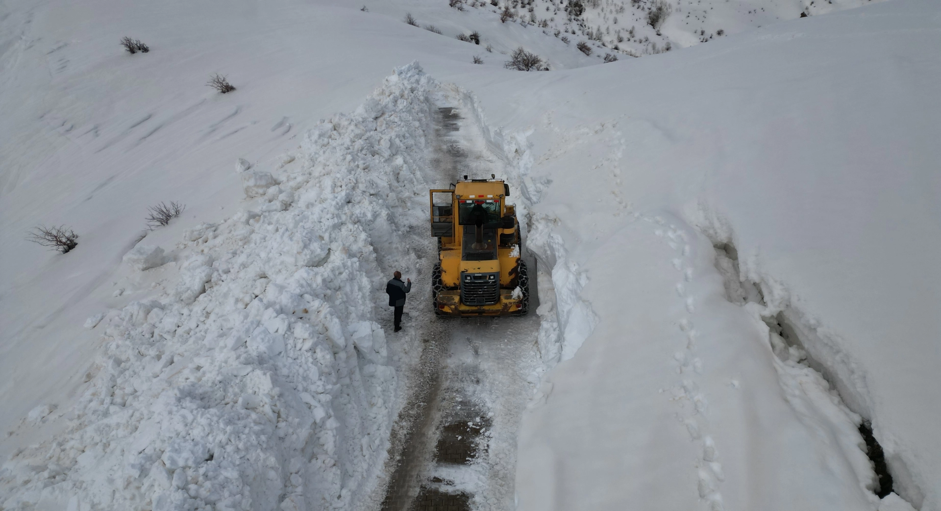 Bitlis İl Özel İdaresi Yol ve Ulaşım Hizmetleri Şantiye Şefi Nail Aşit, "Kar kalınlığı yer yer 5 metreye ulaştığı köy yolunda, yaklaşık 8 kilometrelik yolu en kısa sürede açmayı planlıyoruz. Bugüne kadar yaklaşık 20 bin kilometre yol açtık. Bu sırada bizden desteklerini esirgemeyen başta Sayın Valimiz ve kurum amirlerimize teşekkür ediyoruz. Ülkemizin bazı noktalarında insanlar denize girerken, biz burada karla mücadelemize devam ediyoruz. Devletin şefkatli elini tüm vatandaşlarımıza hissettireceğiz. Ulaşılmayan yer, açılmayan köy yolu kalmayacaktır. Bu konuda tüm arkadaşlarımız gece-gündüz demeden çalışmaktadır" diye konuştu. (DHA)
