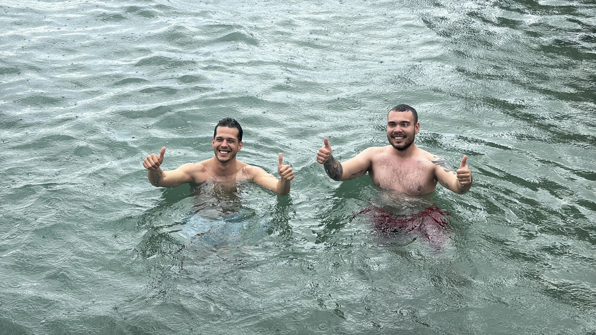 Fırat AKAY/BODRUM (Muğla), (DHA)- MUĞLA’nın dünyaca ünlü turistik ilçesi Bodrum’da aralıklarla etkili olan kuvvetli sağanağa aldırış etmeyen 2 genç, denize girdi.Dünyanın önemli turizm destinasyonlarından Bodrum’da, dün aralıklarla etkili olan kuvvetli sağanak, bugün öğleden sonra da etkisini tekrar gösterdi. Doğancan Akyel ile Enes Türker, İçmeler Sahili'nde kuvvetli sağanağa rağmen iskeleden suya atlayarak denize girdi. Bodrum’da hava ve deniz suyu sıcaklığının 18 derecede olmasına aldırış etmeyen Akyel ve Türker, suyun güzel olduğunu ancak çıkınca üşütüp hasta olmamak için dikkat edeceklerini söyledi. Yaklaşık 15 dakika kuvvetli sağanak altında denizde yüzen Akyel ve Türker, daha sonra sudan çıkarak plajdan ayrıldı. (DHA)FOTOĞRAFLI