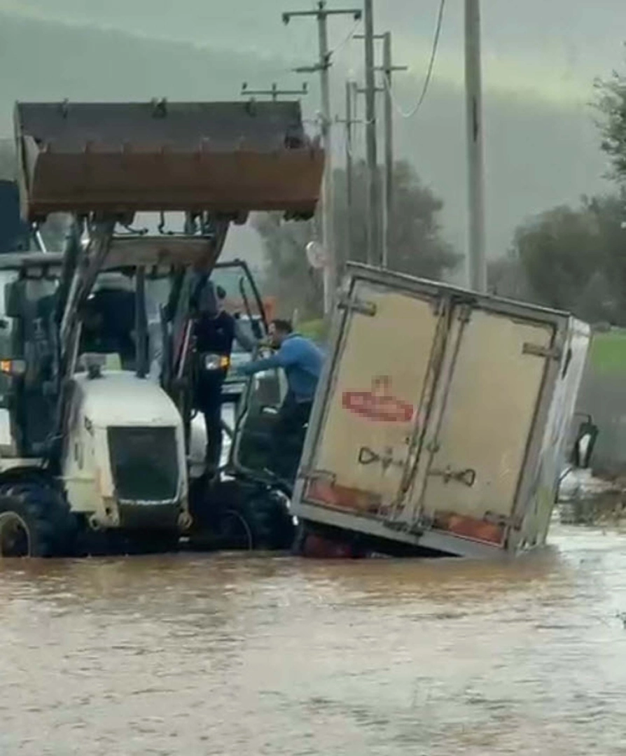 Meteoroloji 4'üncü Bölge Müdürlüğü tarafından Muğla ve çevresi için yapılan sağanak uyarısının ardından Bodrum'da, sabah saatlerinde yağış etkili oldu. Özellikle Mumcular-Etrim ve Pınarlıbelen bölgelerinde yağış zaman zaman şiddetini artırdı. Yoğun yağış nedeniyle Pınarlıbelen-Etrim yolunda su birikintileri oluştu. Yol, güvenlik gerekçesiyle trafiğe kapatılırken, bir kamyonet yolda mahsur kaldı. İhbarla bölgeye belediye ekipleri sevk edildi. Sürücü, kepçe ile kamyonetten çıkarıldı.