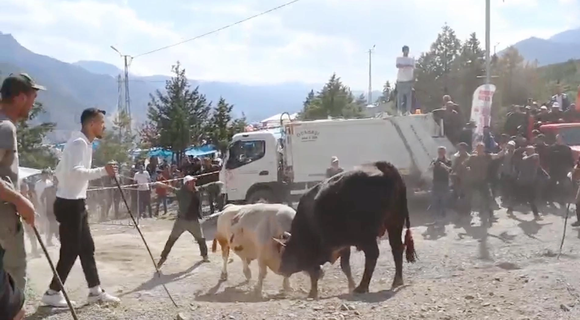 GÜREŞİ KRAL KAZANDIArtvin'in Yusufeli ilçesinde düzenlenen boğa güreşlerinde arena dışına taşan güreşi, rakibi 5 yaşındaki Ateş’i yenen 10 yaşındaki Kral kazandı. Onur Erdem, boğası Kral'ın, kilosunda son 2 yılın şampiyonu olduğunu belirterek, "O doğuştan şampiyon. Rakibi de çok güçlüydü. Sahanın kapısını kırıp dışarı çıktılar. Güreşlerini orada da sürdüren boğalar zevkli bir güreşe sahne oldu. Sonunda kazanan olduğumuz için mutluyum. Son 2 yılda olduğu gibi bu yıl da kendisinden şampiyonluk bekliyorum" dedi. (DHA)Dursun Murat AYDIN/YUSUFELİ (Artvin), (DHA)-