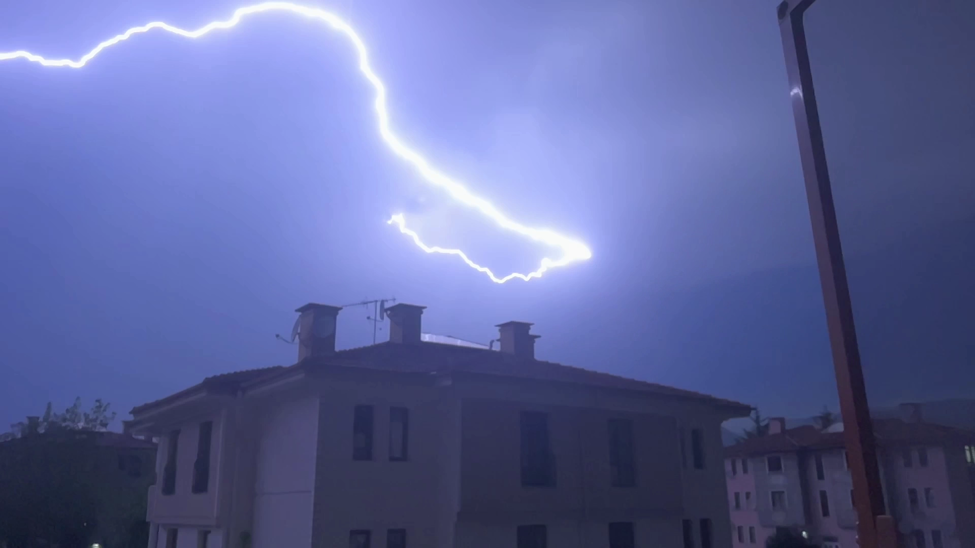 Murat KÜÇÜK/ BOLU, (DHA)- BOLU’da, gök gürültülü sağanak yağış etkili olurken, yıldırım düşme anları cep telefonu kameralarına yansıdı.Bolu’da gün boyu güneşli olan hava, akşam saatlerinde yerini sağanak yağışa bıraktı. Gök gürültülü yağmurla birlikte arka arkaya çakan şimşekler, gökyüzünü aydınlattı. Düşen yıldırım da kentte korkuya neden oldu. Yıldırım düşme anları cep telefonu kameralarına yansıdı. (DHA)