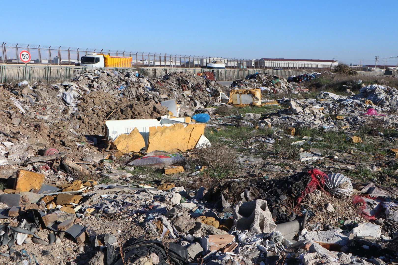 Kentte sivil uçuşlara kapatılan Adana Havalimanı’nın bitişiğinde, merkez Seyhan ilçesi Gülbahçesi ve Yenidam mahalleleri yakınında bulunan geri dönüşüm tesisinin ve vatandaşların yol kenarlarına döktüğü molozlar tepki çekiyor. Alanda ‘Moloz ve çöp dökmeyin’ yazılı uyarı levhalarının bulunmasına rağmen dökümlerin yapılması sonucu atıklardan tepecikler oluşturdu. Bölge genelinde plastik ve ambalaj atıkları, evsel çöpler ve inşaat molozlarının yanı sıra beyaz eşya atıkları, cam şişeler, kıyafetler ve koltuk gibi çok sayıda farklı türde çöpün bulunduğu görüldü. Atıkların zaman zaman yakıldığı, bunun da çevreye zarar verdiği belirtildi. Özellikle hava sıcaklıklarının arttığı dönemlerde kötü kokunun yoğunlaştığı, çevrede oluşan görüntünün rahatsız edici boyutlara ulaştığı kaydedilirken, çevredekiler de yetkililerden önlem alınmasını istedi.