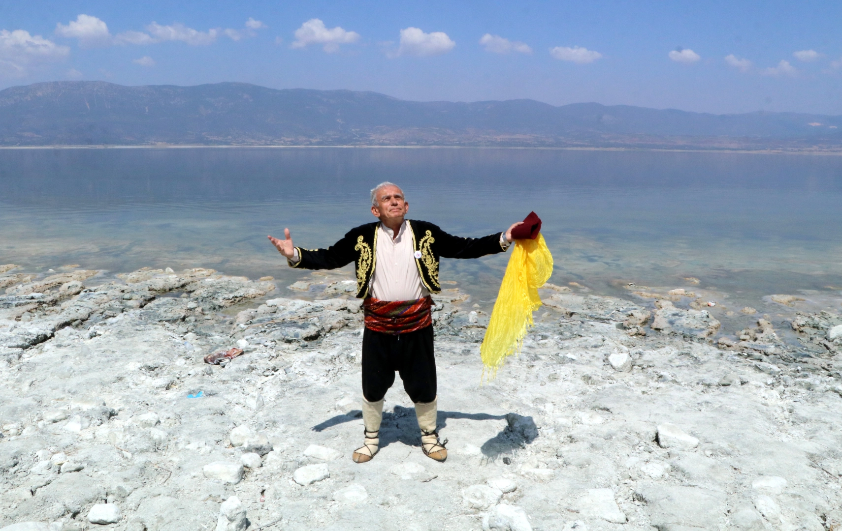 Mesut MADAN/BURDUR, (DHA)- BURDURLU emekli öğretmen Eşraf Yurdasiper (69), son yıllarda suyu hızla çekilen ve kuruma tehlikesiyle karşı karşıya kalan Burdur Gölü için ağıt yaktı.Burdurlu emekli öğretmen Eşraf Yurdasiper, son yıllarda yaşanan kuraklık ve bilinçsiz sulama nedeniyle suyu hızla çekilen, 50 yılda su kodu yaklaşık 19 metre azalan Türkiye'nin 7'nci büyük gölü Burdur Gölü için ağıt yaktı. Yurdasiper, Burdur Gölü halk plajında ağıt okudu ve ortaokul öğrencisiyle kurumaya dikkat çekmek için halk oyunu oynadı. Yurdasiper'in ağıdında şu sözler yer aldı:"Gölümüze baka baka kuruttuk. Kuruttuk da düz ovaya yatırdım, gölümüzü kaybettik, unuttuk. Haden dostlar aramaya gidelim. Gölümüzün önü çittir çitilmez. Çitinin yaprağı sıktır dökülmez. Gölüm elin kahrı güçtür, çekilmez. Ben çekem de gül başına vermesin."Burdur Gölü'ndeki kuraklığa dikkati çeken Yurdasiper, "Burdur Gölü hiç kurumayacak gibi bir halimiz vardı. Gölümüzü sulu şekilde çocuklarımıza bırakalım. Göl kuruduktan sonra Burdur için, çocuklar için tehlike olacak. Bu duruma dikkat çekmek için göle ağıt yaktım" dedi. İzmir Burdurlular Derneği Başkanı Refik Kaya ise "Çocukluğumuzdan hatırladığımız gölü özlüyoruz. Gölde 50 yılda 18 metre civarında çekilme meydana geldi. Tarım ve hayvancılık ilimizde yaygın. Su kaynaklarının düzensiz kullanımı, bilinçsiz sulama gölümüze zarar verdi. Gölümüzü kurtarmamız gerekli" diye konuştu.Antalya Burdurlular Derneği Başkanı Hüseyin Yamacı da gölü besleyen kaynakların kuruması ve bilinçsiz sulama gibi hatalardan gölün kurumaya başladığını ifade etti. (DHA)