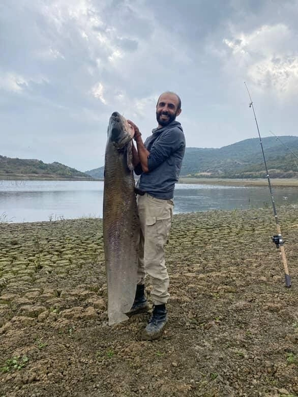 Yavuz YILMAZ/İNEGÖL (Bursa), (DHA)- BURSA’nın İnegöl ilçesindeki Boğazköy Barajı’nda su seviyesinin düşmesiyle birlikte, vatandaşlar kıyıya daha yakın alanlarda görülen dev yayın balıklarını avlamaya başladı.