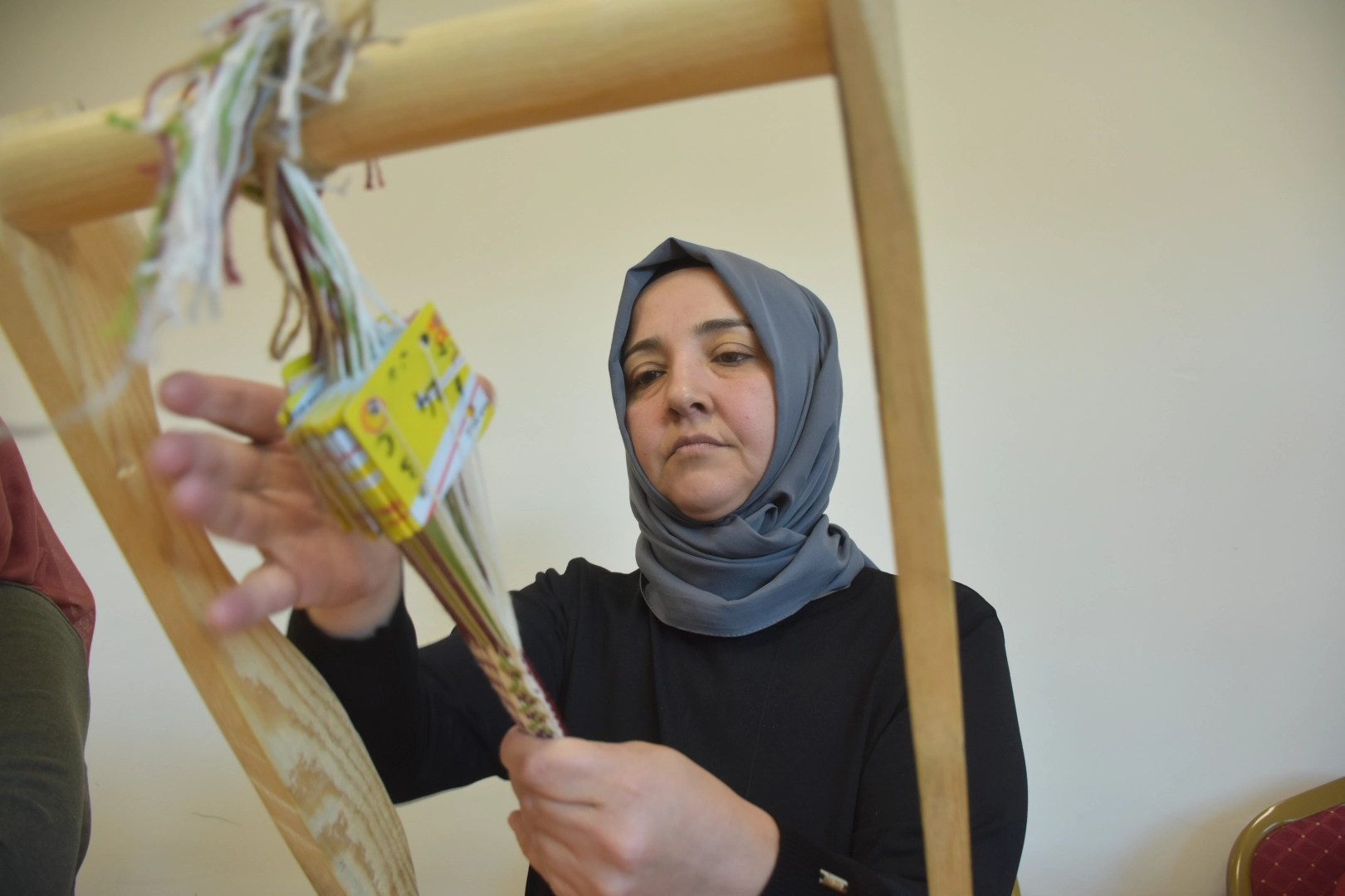 Hüsnü Ümit AVCI-Uğur YİĞİT/SİVAS, (DHA)-SİVAS'ta çeşitli meslek gruplarından kadınlar, yaşadıkları stres ve odaklanma sorununu azaltmak için tarihi milattan önceye kadar uzanan 'çarpana dokuma'yı öğrenmek için kursa gidiyor. Kursa katılan kadınlar, dikkat ve hassasiyet gerektiren ürünleri dokurken hem stres atıyorlar hem de ev ekonomilerine katkı sağlıyorlar.Sivas Halk Eğitim Merkezi bünyesinde Tarım ve Orman Bakanlığı'na bağlı Sivas El Sanatları Eğitim Merkezi Müdürlüğü tarafından açılan kursa giden kadınlar, dikkat ve hassasiyet gerektiren ürünleri dokurken bir yandan stres atıyor. Kadınlar, yaptıkları ürünleri satarak aile ekonomilerine de katkıda bulunuyor. Kursa katılan kadınların kullandığı malzemeleri merkez karşılarken; şu an 12 kadın kursiyer, çarpana dokuma sanatını Kültür ve Turizm Bakanlığı, Geleneksel El Sanatları, Çarpana Dokuma Sanatçısı Gülendam Polat'tan öğreniyor.'YOK OLMAYA YÜZ TUTMUŞ BİR EL SANATIMIZ'Çarpana dokuma hakkında bilgi veren Gülendam Polat, "Tarihi milattan önce 3 binli yıllara kadar gitmektedir. Anadolu'ya ticaret yoluyla gelmiştir. Anadolu'da çok yoğun bir şekilde kullanılmıştır. Yaygın bir şekilde dokunmuştur. Teknolojinin gelişmesi ile birlikte günümüze kadar gelmiştir. Teknolojinin gelişmesi ile birlikte de yok olmaya yüz tutmuş bir el sanatımız, günümüzde yaşatılmaktadır. Çarpana dokunma, bulunduğu çağa uygun şekilde kullanılmaktadır. Eskiden Anadolu'da yük taşımalarda, hayvanları süslemelerde, bel bağlarında, çuval taşımalarda, hatta ölüleri mezara indirmede kullanılan malzemeleri üretilirken, günümüzde modern çağın estetiğine uygun farklı işlevsellikleri olan, farklı alanlarda, farklı tasarımlarda kullanılıyor" dedi.'HANIMLARI ÇAĞIN STRESİNDEN UZAKLAŞTIRIYORUZ'Son zamanlarda çarpana dokuma sanatına ilgi olduğunu söyleyen Polat, "Bu çarpana kursları aracılığıyla ev hanımlarını topluma kazandırarak, üretime katkıda bulunmasını sağlıyor, aynı zamanda çağın stresinden hanımları uzaklaştırıyoruz. Çünkü çarpana dokunma gerçekten odaklanma gerektiren bir dokuma türü. Bu anlamda da hanımlarımız ciddi anlamda günümüzün stresinden uzaklaşabiliyorlar, sosyalleşme alanları genişliyor. Ayrıca yaptıkları ürünleri satarak, kendilerine ve aile ekonomilerine katkıda bulunabiliyorlar. Kursiyerlerimiz ilk başta geldiklerinde dokuma kartlarıyla ve iplerle ilk kez tanışıyorlar ve başlangıçta zorlanıyorlar. Ama sonrasında tam olarak odaklandıkları için hem ruhen hem bedenen çok mutlu oluyorlar. Bir de bu iş kazanca dönüştüğü zaman, onlar için çok daha keyifli hale geliyor" diye konuştu.'DESEN ÇIKTIKÇA İNSAN ÇOK MUTLU OLUYOR'Kursiyerlerden Öznur Ağcahan, kursa kendisini geliştirmek için geldiğini belirterek, "Kursa hobi amaçlı katıldım. Çok güzel ilerliyor ve keyifli bir hale geldi. Dokuma sanatının matematiksel bir tarafı da var. Hafızayı kuvvetlendiren bir özelliği var. Eğlenceli ve severek yapıyoruz" dedi. Melike Demir ise "İlk başta çok zorlandım. Hocamızın sayesinde ilerledim. Odaklandığınız zaman stresini atıyorsun. Farklı şeyler öğrenmeyi seviyorum. Şu anda kurs çok güzel gidiyor. Dokumayı gördükçe, desen çıktıkça insan çok mutlu oluyor" diye konuştu. ÇARPANA DOKUMAÇarpana dokuma, ilk çağlarda ve Orta Asya'da insanların çadırlarını bağlamak ve çocuklarını sırtında taşımak için kullandıkları bir şerit olarak bilinirken; günümüzde kolye, kemer, çanta gibi aksesuar yapımlarında kullanılıyor. Dikdörtgen ve kare biçiminde mukavva kartlarla oluşturulan çözgü ve atkı denilen sistemler, çarpana dokumanın başlangıcını sağlıyor. Bu sistem ile farklı teknik, malzeme ve kalınlıklarda iplerin meydana getirdiği çeşitli görünümler elde ediliyor. Kağıt üzerinde dokunması planlanan desenleme yöntemine göre şema çiziliyor. Çizilen şemanın ardından kartlara istenilen uzunlukta ipler geçiriliyor. Ucuna düğüm atılan iplerin bir ucu bele, diğer ucu karşı tarafta olacak şekilde sağlam bir yere sabitleniyor. Daha sonra oluşturulan kartlar çözgü üzerinde çevrilerek dokumayı meydana getiriyor. (DHA)