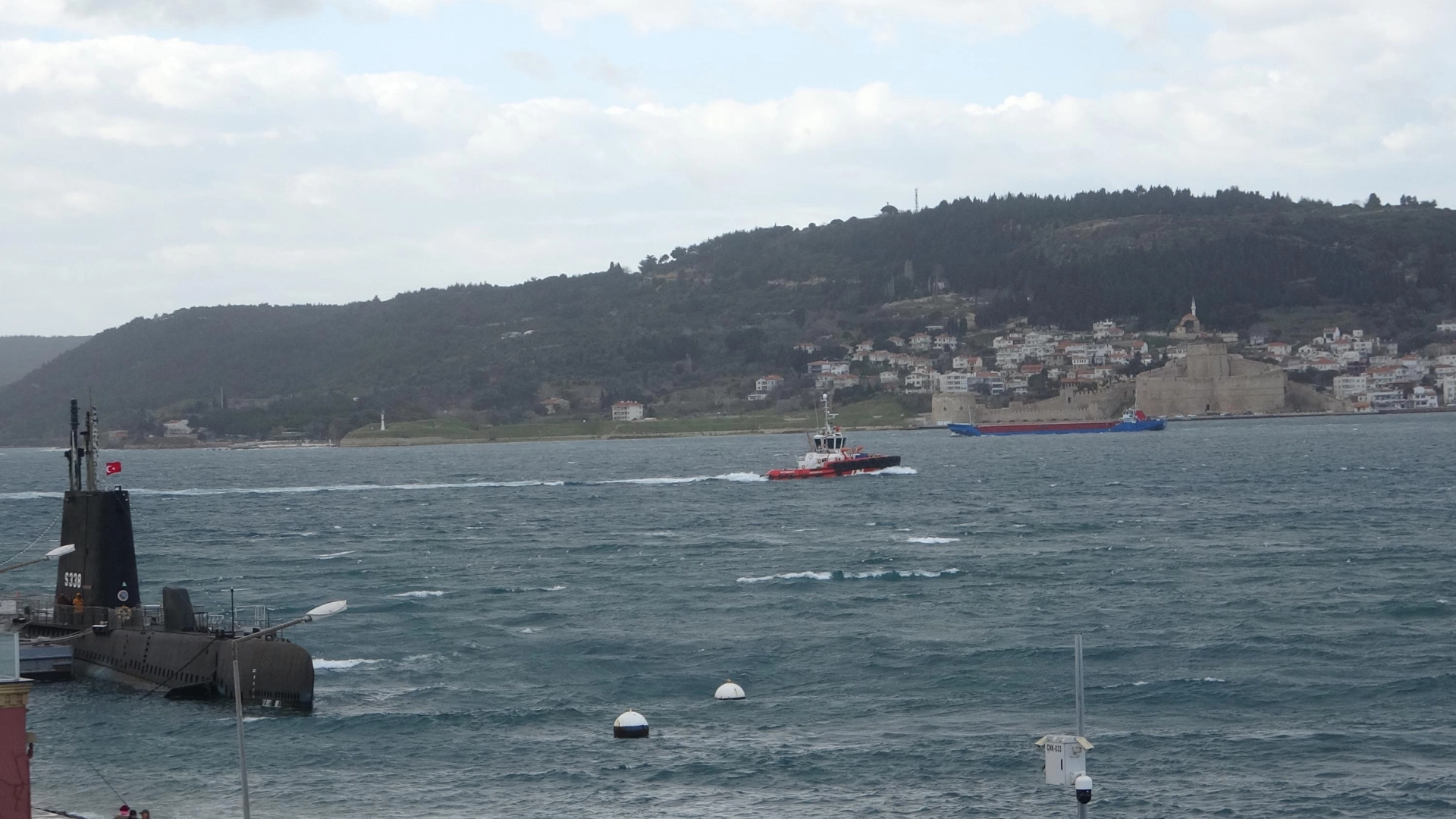 Nazif Cemhan ŞEN/ÇANAKKALE, (DHA)-ÇANAKKALE'de etkili olan fırtına nedeniyle boğaz trafiği çift yönlü olarak trafiğe kapatıldı.