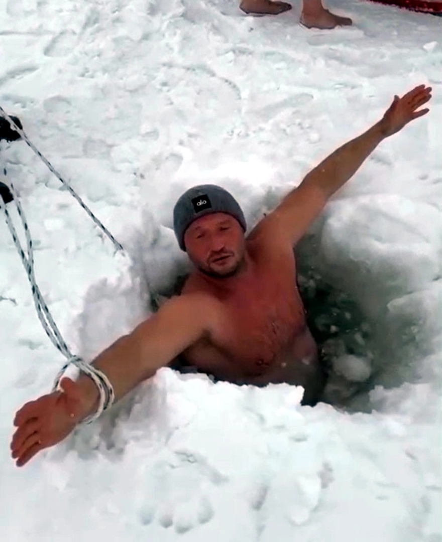 İstanbul'dan gelen yüzücüler Aydın Aydıner ile Hayriye Çetin, Çıldır Gölü’nde kızak keyfinin ardından buz gibi suya girdi. Gölde atlı kızak işleten Dural Daşdemir’in yaklaşık 40 santimetre kalınlığındaki buzu kırmasının ardından önce göle Aydın Aydıner girdi. Koluna güvenlik için ip bağlayan Aydıner, suda bir süre bekledi. Aydıner, suyun dışardan sıcak olduğunu söyledi.