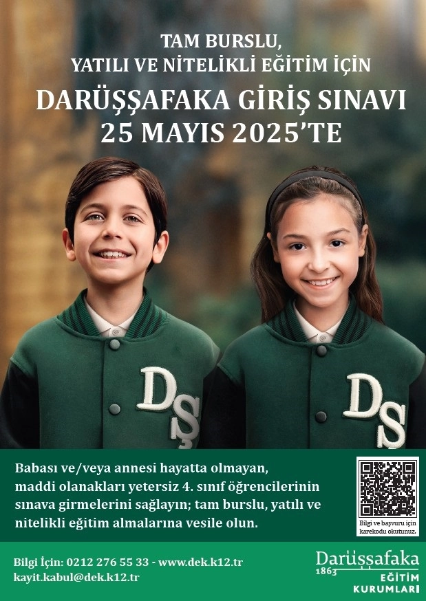 İSTANBUL, (DHA)- BABASI ve/veya annesi hayatta olmayan, maddi olanakları yetersiz, başarılı öğrencilere tam burslu, yatılı, nitelikli eğitim sunan Darüşşafaka Eğitim Kurumları'nın 2025 yılı giriş sınavı 25 Mayıs Pazar günü, saat 11.00'de, Türkiye'nin 42 ilinde düzenlenecek.Maddi durumu okumaya elverişsiz çocukların eğitimine destek olmak amacıyla, 1863 yılında beş Osmanlı aydını tarafından kurulan ve binlerce öğrencinin hayatına dokunan, Türkiye'nin eğitim alanındaki ilk sivil toplum kuruluşlarından biri olan Darüşşafaka Cemiyeti; kurulduğu günden bu yana ‘Eğitimde Fırsat Eşitliği’ misyonuyla başarılı öğrencilerin hayatlarını değiştirmeyi hedefliyor.Darüşşafaka Eğitim Kurumlarının 2025 yılı giriş sınavı, 25 Mayıs Pazar günü, saat 11.00'de, Türkiye'nin 42 ilinde düzenlenecek. Türkiye Cumhuriyeti vatandaşı ilkokul 4’ncü sınıf öğrencilerinin katılabildiği Darüşşafaka Giriş Sınavı’nda başarılı olan, mali durum araştırması ve sağlık kurulu kontrolünden geçen öğrenciler, tam burslu, yatılı ve İngilizce ağırlıklı eğitim alma imkanı kazanacak.Öğrenciler, Darüşşafaka Giriş Sınavı için internet adresinden başvuru yapabilecekleri gibi bizzat okula giderek de başvurularını gerçekleştirebilecekler.Darüşşafaka Giriş Sınavı; Adana, Adıyaman, Afyonkarahisar, Ağrı, Ankara, Antalya, Balıkesir, Batman, Bursa, Çanakkale, Çorum, Denizli, Diyarbakır, Erzurum, Eskişehir, Gaziantep, Hatay, İstanbul, İzmir, Kahramanmaraş, Kars, Kayseri, Kocaeli, Konya, Kütahya, Malatya, Manisa, Mardin, Mersin, Nevşehir, Ordu, Rize, Samsun, Siirt, Sivas, Şanlıurfa, Tekirdağ, Tokat, Trabzon, Van, Yozgat ve Zonguldak’ta düzenlenecek.Sınava Türkiye’nin her ilinden başvuru kabul edilecek. 42 il dışından sınava katılacak, maddi durumu elverişsiz öğrenci ve velilerinin en yakın sınav merkezine gitmek için yapacakları ulaşım masrafına da Darüşşafaka Cemiyeti tarafından destek verilecek.Darüşşafaka Eğitim Kurumları Giriş Sınavı başvuru şartları şu şekilde sıralandı:"Öğrencinin;“T.C. vatandaşı olması“Babasının ve/veya annesinin hayatta olmaması“Ailesinin maddi olanaklarının kolej düzeyinde eğitim alması için yeterli olmaması“2014 ve daha sonraki yıllarda doğmuş olması (Yaş düzeltmesi geçersizdir.)“2024-2025 eğitim ve öğretim yılında ilkokul 4. sınıf öğrencisi olması.”Darüşşafaka Eğitim Kurumları Giriş Sınavı'na başvurmak için gerekli belgeler ise şu şekilde sıralandı:“Nüfus cüzdanı fotokopisi“Vukuatlı nüfus kayıt örneği (Vefat eden ebeveynin bilgileri de dâhil olmak üzere hayattaki ebeveyne ait, e-devletten temin edilebilir.)“Öğrenci belgesi (Okumakta olduğu okul müdürlüğünden ya da e-devletten temin edilebilir.)“Öğrencinin dört (4) adet yeni çekilmiş vesikalık fotoğrafı“Başvuru formu (doldurulmuş)“İkametgâh belgesi (E-devletten temin edilebilir).”