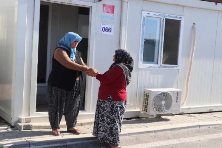 Kadir GÜNEŞ/GAZİANTEP, (DHA)- GAZİANTEP'in Nurdağı ilçesinde, depremzedeler Kurban Bayramı'nı buruk karşıladı. Depremzedeler, konteyner kentte aileleriyle bayramlaşırken, yakınlarını kaybedenlerde de mezar başında gözyaşı döktü. Kahramanmaraş merkezli 6 Şubat depremlerinden en çok etkilenen illerden olan Gaziantep’in Nurdağı ilçesinde depremzedeler, konteyner kentte yaşamlarını sürdürüyor. Depremzedeler, felaketin ardından ilk Kurban Bayramı’nı evlerinden ayrı geçirmenin hüznünü yaşadı, konteyner kentte bayramlaşıp kaybettikleri yakınlarının mezarları başında gözyaşı döktü. ‘GEÇEN BAYRAMLAR BAMBAŞKAYDI’ Durna Erenler, deprem dolayısıyla 2 katlı evinin yıkıldığını ve konteyner kentte yaşamaya başladığını söyledi. Geçen yıl bayramların bir başka geçtiğini ancak bu bayramda hüzünlü olduklarını ifade eden Erenler, “Kurban Bayramı bu sene hüzünlü geçiyor. Buna da şükürler olsun. Evimi depremde kaybettim. Konteyner kentte oğlumun yanına yerleştim. 2 katlı evim kuru bir yer oldu şimdi. Geçen yıl bayramlarımız bambaşkaydı. Bu yıl her taraf harabe oldu. Tüm yakınlarımız bir yerlere dağıldı gitti. Buralarda kimsemiz kalmadı. Yakınlarımız gelince bayramlaşacağız. Ne yapalım bugünlerimize de şükür’’ dedi. Buruk olduklarını söyleyen Doğan Erenler ise geçen yıl evlerinin bahçesinde kurbanlarını kestiklerini söyledi. Erenler, gelecek bayramı yeni evlerinde geçirmek istediklerini ifade etti.