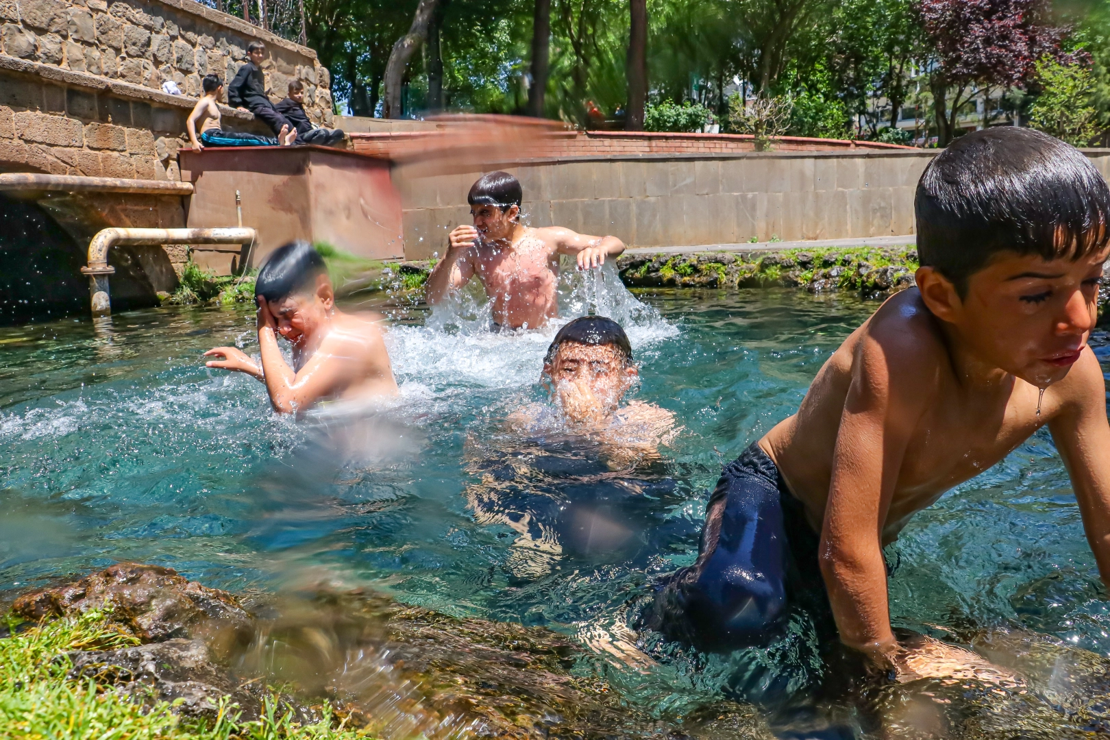 Selim KAYA-Özcan ARGİN/DİYARBAKIR, (DHA)- DİYARBAKIR’ın Sur ilçesinde, hava sıcaklıklarının artmasıyla birlikte çocuklar, tehlikeli ve yasak olmasına rağmen tarihi Anzele Parkı’ndaki süs havuzuna girip serinlemeye başladı. Havuzda yüzen çocuklardan Ebubekir Güzel, “Yazın buralar dolup taşacak ve yüzmeye yer bulamayız. O nedenle şimdi sakin ve ben de şimdi geldim” dedi.Sur ilçesi Melikahmet Mahallesi'ndeki tarihi Anzele Parkı'nda bulunan süs havuzu, havaların ısınmasıyla birlikte yine çocukların, oyun ve yüzme alanına döndü. Çocuklar, serinlemek amacıyla, tehlikeli ve yasak olduğunu gösteren uyarı levhalarına aldırış etmeden havuza giriyor. Termometrelerin 19 dereceyi gördüğü kentte, çocuklardan bazıları yaklaşık 3 metre yükseklikten 1 metre derinliğindeki suya atladı. Kimi çocuklar da suya girdikten sonra havuz kenarındaki taşlara uzanarak güneşlendi.Yenişehir ilçesi Şehitlik Mahallesi’nden yüzmeye gelen Ebubekir Güzel, “Her sene buraya yüzmeye geliyorum. Havuzun derin olmaması tercih nedenim. Burada yüzmeyi de öğrendim. Yazın buralar dolup taşacak. Yüzmeye yer bulamayız. O nedenle şimdi sakin ve ben de şimdi geldim” diye konuştu.Bağlar ilçesi Bağcılar Mahallesi’nden gelen Berat Çerçel ise “Buranın ücretsiz olması beni cezbediyor. Havalar sıcak ve bedavadan yüzüyoruz” ifadelerini kullandı. (DHA)