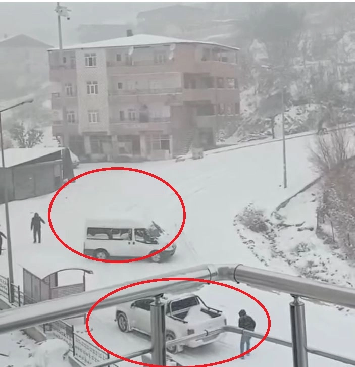 Diyarbakır’da kar yağışı etkisini sürdürürken, kayganlaşan yollar nedeniyle birçok kaza meydana geldi. Sürücülerin yaşadığı zor anlar, cep telefonuyla kaydedildi. Kulp ilçesinde ise yokuş aşağı kayan minibüsün üzerine doğru geldiğini gören kamyonet sürücüsü, son anda manevra yaparak kazayı önledi. (DHA)
