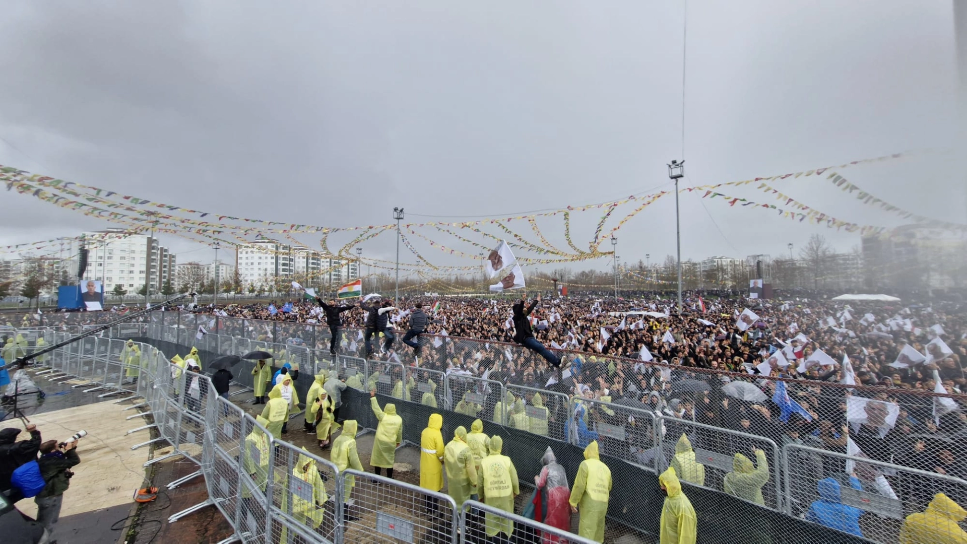 Yaklaşık 12 bin polisin görev aldığı 136 bin metrekarelik alanda toplam uzunluğu 10 kilometreyi bulan bariyerlerle çevrili alana gelenler, 6 ana giriş kapısından 3 kademeli arama noktasından geçirilerek içeri alındı. İl Emniyet Müdürü Nurettin Gökduman da alana gelerek güvenlik önlemlerini denetledi. Kurulan platformdan müzik yayınları yapılırken, toplananlar da halay çekmeye başladı. Alanda kurulan bölümde istiflenen yaklaşık 5 ton odun, ateşe verilecek. Nevruz kutlamalarına Diyarbakır kent merkezinin yanı sıra çevre il ve ilçelerden de katılımların olduğu görüldü. (DHA)