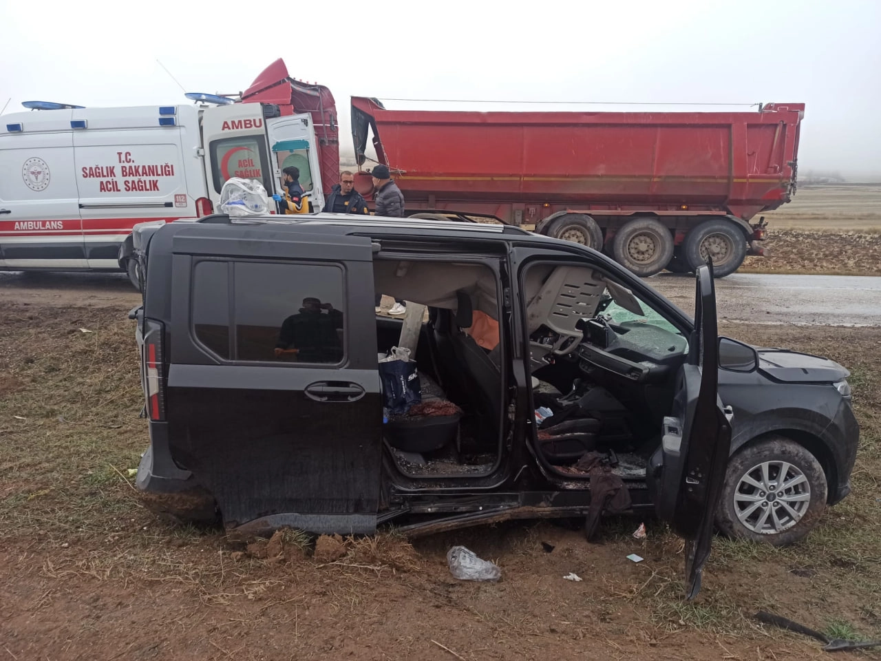Hasan ÇETİN/ALACA (Çorum), (DHA)- ÇORUM'un Alaca ilçesinde, yağış nedeniyle kayganlaşan yolda dorsesi yan yatan TIR’a çarpan hafif ticari araçtaki Şaban ve Şengül G. çifti yaralandı.