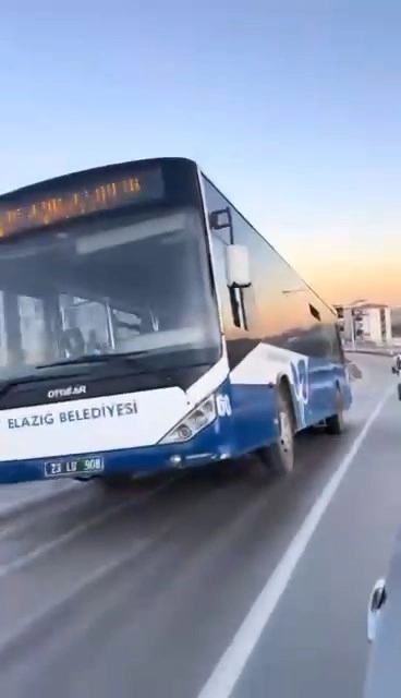 Tekin YALÇINKAYA/ELAZIĞ,(DHA)- ELAZIĞ'da arızalanan şehir içi yolcu otobüsü, bir tekeri havada trafikte seyretti. O anlar, diğer sürücüler tarafından cep telefonu kamerasıyla görüntülendi.Olay, Ataşehir Mahallesi İmam Efendi Bulvarı'nda meydana geldi. Ön aksamında arıza olan belediyeye ait şehir içi yolcu otobüsü trafikte, sol ön tekeri havada seyretti. Durumu gören sürücüler, o anları cep telefonu kamerasıyla görüntüledi. Otobüsün bakımının yapılacağı yerin yakın olması nedeniyle çekiciyle götürülmediği öğrenildi. (DHA)