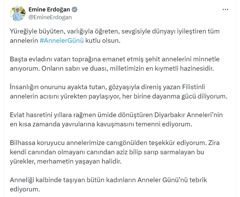 Emine Erdoğan'dan 'Anneler Günü' paylaşımı