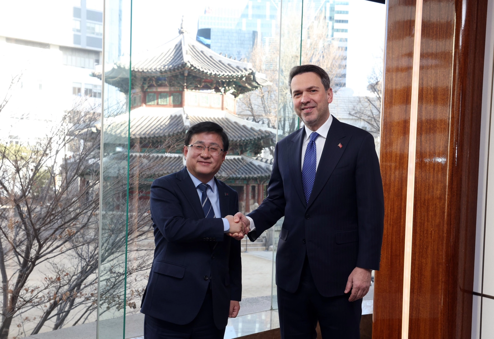 GÜNEY KORE, (DHA) - ENERJİ ve Tabii Kaynaklar Bakanı Alparslan Bayraktar, Türkiye-Güney Kore 9’uncu Dönem Karma Ekonomik Komisyon (KEK) Toplantısı kapsamında Güney Kore İklim, Enerji ve Çevre Bakanı Kim Sungwhan ile bir araya geldi.