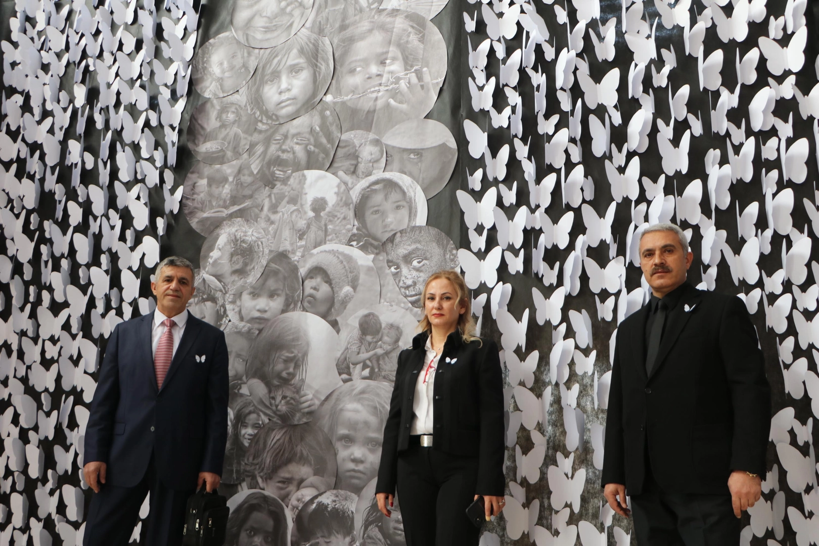 Yakutiye Anadolu Lisesi Görsel Sanatlar Öğretmeni Derya Erkut, Tevfik İleri Anadolu Lisesi'nde görsel sanatlar öğretmeni Zülküf Sümbül ve Erzurum Eğitim Uygulama Merkezi Müdür Yardımcısı Nejmi Atalay, savaşlarda ölen çocuklara dikkat çekmek için 'Beyaz Kelebekler Cennete Uçtu' isimli enstalasyon sergisi açtı. Savaşlarda mağdur olan çocukların fotoğraflarının yanı sıra hayatını kaybedenleri temsilen 6 bin beyaz kelebeğin kullanıldığı sergi Yakutiye Anadolu Lisesi'nde açıldı. Erzurum Büyükşehir Belediyesi Başkan Vekili Mehmet Akarsu, İl Milli Eğitim Müdürü Süleyman Ekici, Yakutiye Milli Eğitim Müdürü Abdurrahman Gazioğlu ve davetliler, sergiyi gezip öğrencilerin hazırladıkları oratoryoyu izledi. Öğretmenleri tebrik eden İl Milli Eğitim Müdürü Süleyman Ekici, "Salona girdiğimizde duygularımız çok farklıydı. Bizim için görsellik ihtiva eden bir tablo vardı. Sergiyi gezdikten sonra bunun gönlümüzde nasıl bir yara açtığını nasıl bir travma olduğunu iliklerimize kadar hissettik" diye konuştu.