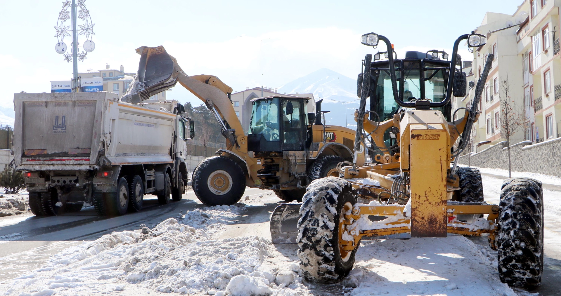 Turgay İPEK/ERZURUM, (DHA)- ERZURUM'da kar yağışının ardından Büyükşehir Belediyesi ile merkez ilçeler Yakutiye, Palandöken ve Aziziye belediyeleri temizlik çalışmalarını aralıksız sürdürüyor. Belediyelerin karla mücadele ekipleri, günde ortalama 500 kamyon karı şehir dışına taşıyor.Erzurum'da yağışın ardından Büyükşehir Belediyesi ile merkez ilçeler Yakutiye, Palandöken ve Aziziye belediyelerinin karla mücadele ekipleri, çalışmalarını aralıksız sürdürüyor. Merkez ilçelerle birlikte Erzurum Büyükşehir Belediyesi'nin 7 bin 700 kilometre yol ağındaki 1500 yerleşim yerinde karla mücadele ettiklerini belirten Büyükşehir Belediyesi Genel Sekreteri Zafer Aynalı, "Belediyemizin karla mücadele ekipleri sahada çalışmalarını büyük bir özveri ile sürdürüyor. Rahmeti ve bereketi ile gelen kar yağışından dolayı vatandaşlarımızın herhangi bir olumsuzluk yaşamaması için 24 saat aralıksız sahadayız. Kar yağışı sonrası oluşabilecek olumsuzlukların önüne geçebilmek için yaya ve taşıt trafiğini açtıktan sonra toplanan karı, iş makinesiyle kamyonlara doldurup, şehir dışına taşıyoruz. Büyükşehir ve merkez ilçe belediyeleri olarak gündeme 500 kamyon karı, şehir dışına taşıyoruz. 25 Kasım'dan itibaren sürdürülen karla mücadelede günde ortalama 1 milyon lira harcıyoruz" dedi.Yol açma çalışması sonucu çok sayıda hastanın kırsal mahalledeki evlerinden alınarak hastaneye ulaştırıldığını ifade eden Aynalı, zor hava şartlarında can dostları da ihmal etmeyerek muhtelif noktalara mama bıraktıklarını belirtti. (DHA)