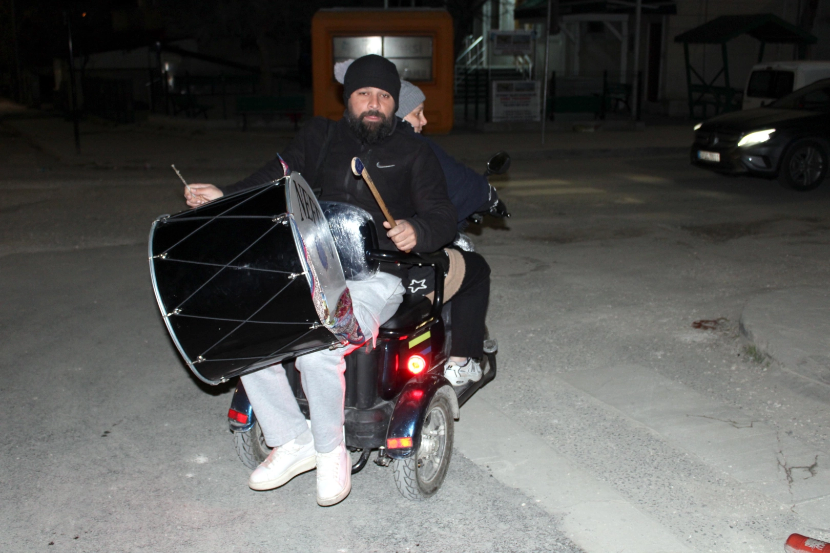 Fevzipaşa Mahallesi’nde sahur vaktinde ortaya çıkan motorize davulcu görüntüsü mahalle sakinlerinin de ilgisini çekiyor. Sokaklarda davul sesiyle birlikte motosikletle ilerleyen Halka çifti, ramazan gecelerine farklı renk katıyor. Vatandaşlar da bu farklı yöntemi ilgiyle karşılıyor. Ramazan ayının birlik ve beraberlik duygularını güçlendirdiğini belirten Halka çifti, görevlerini ramazan ayı boyunca sürdürmeye devam edeceklerini ifade etti. (DHA)