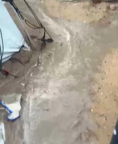- Gazze’de şiddetli yağış nedeniyle su altında kalan çadırlardan görüntüler.