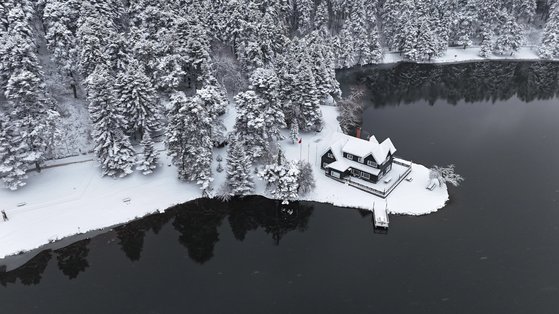 Bolu’da çam ormanlarıyla çevrili Gölcük Tabiat Parkı, kar yağışının ardından beyaz örtüyle kaplandı. Tabiat parkında kar kalınlığı yaklaşık 20 santimetreye ulaştı. Yılın her mevsimi tatilcilerin ilgi odağı olan Gölcük’ün karla kaplı çam ormanlarının göl ile bütünleşmesi eşsiz manzaralar oluşturdu. Soğuk havaya rağmen tabiat parkına gelen tatilciler, göl çevresinde yürüyüş yapıp iskele üzerinde fotoğraf çekti. Manzara dronla görüntülendi. (DHA)