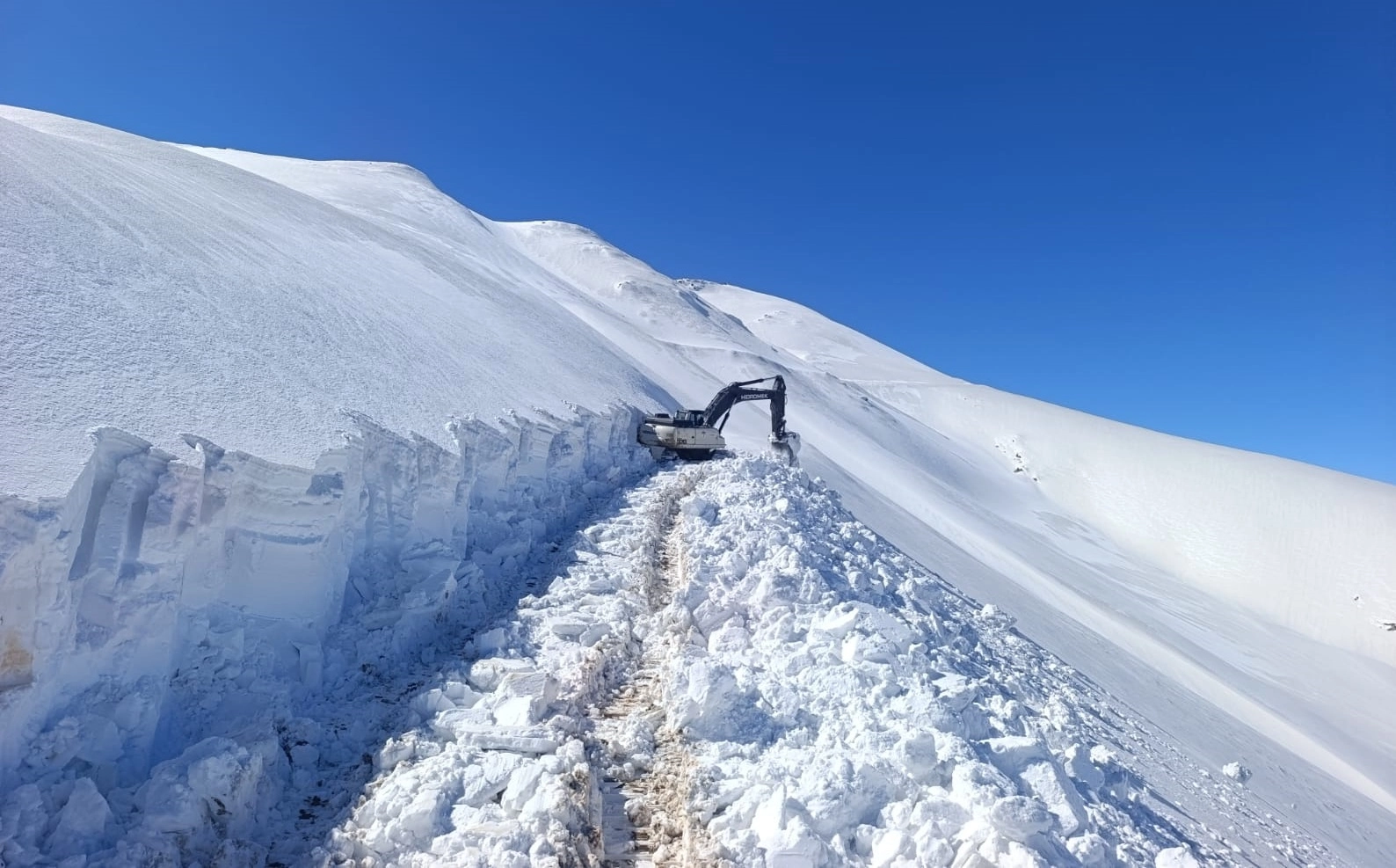 Mehmet ÖZKAN/HAKKARİ, (DHA)- HAKKARİ’nin Yüksekova ve Şemdinli ilçelerinde, etkili olan yoğun kar yağışı nedeniyle kapanan askeri üs bölge yolları, karla mücadele ekiplerinin çalışmasıyla yeniden ulaşıma açıldı. Yer yer kalınlığı 6 metreyi aşan kar, ekiplerin çalışmalarını güçleştirdi.