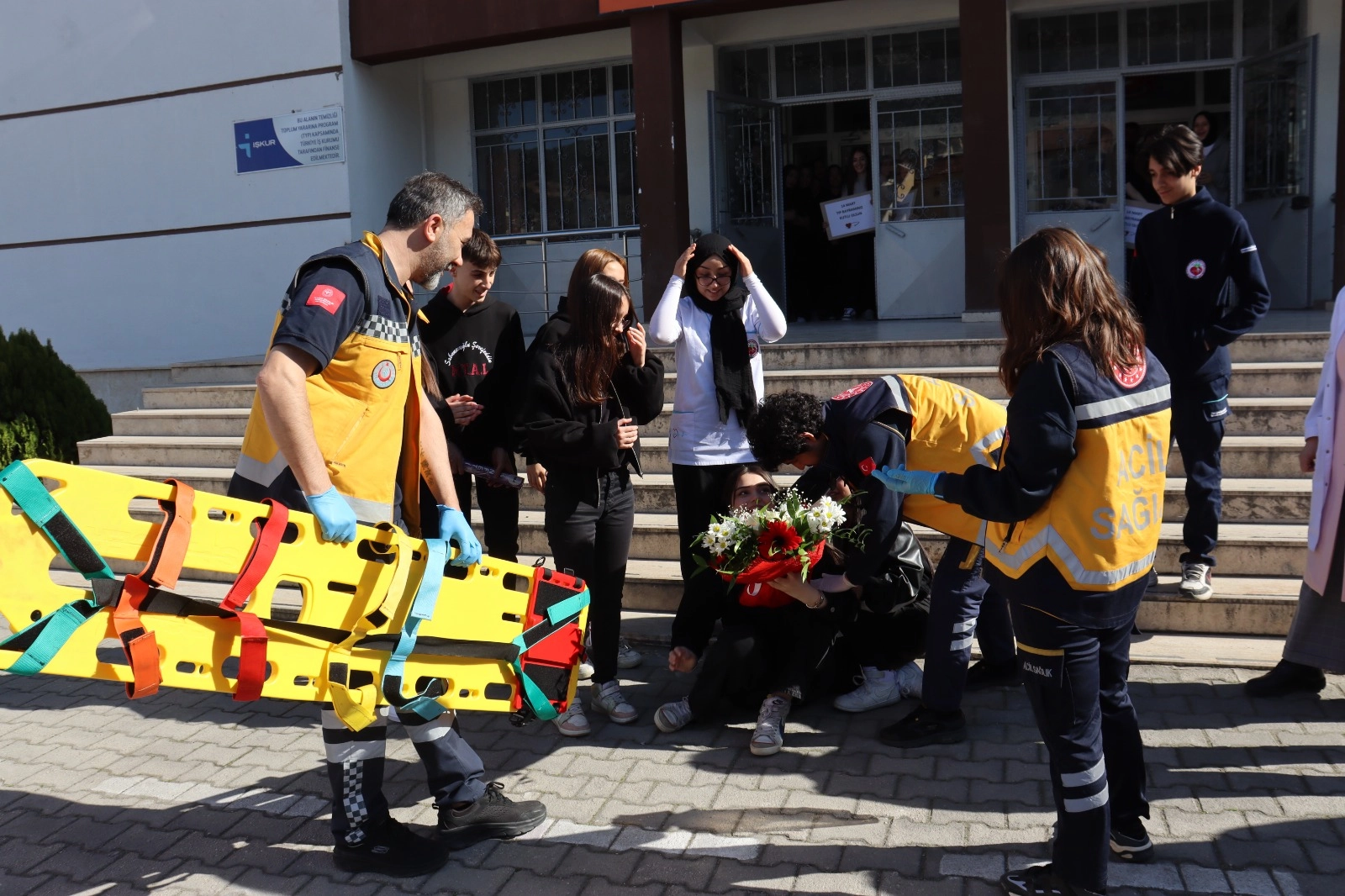 Şerife Serap KARA/AMASYA, (DHA)- AMASYA'da merdivenden düşme ihbarıyla okula giden sağlık ekipleri, bahçede öğrencilerin sürpriziyle karşılaştı. Öğrenciler, çiçek verdikleri sağlıkçıların '14 Mart Tıp Bayramı'nı, pankart açarak ve alkışlarla kutladı.Amasya Sabuncuoğlu Şerefeddin Mesleki ve Teknik Anadolu Lisesi öğrencileri, '14 Mart Tıp Bayramı' nedeniyle sağlık çalışanları için sürpriz planladı. Öğrenciler günler öncesinden hazırlıklarını tamamlarken, okul müdürü Hüseyin Kılıç merdivenden düşme olduğu ihbarında bulundu. Yerde yatan öğrenci ve diğer öğrenciler, çiçek ve pankartlarla sağlık ekibini bekledi. Okula gelen sağlık ekipleri vakaya müdahale edecekleri sırada çiçek ve pankartları görüp alkışlarla karşılandı. Öğrencilerin hazırladığı pankartlarda, ‘İyi ki varsınız. 14 Mart Tıp Bayramı'nız kutlu olsun’ ifadeleri yer aldı.Sürpriz nedeniyle hem şaşırıp hem de çok mutlu olduklarını anlatan Doktor Üneys Çarklı, “Bugün, komuta merkezi tarafından acil şekilde bir vaka verildi. Vakaya ivedi bir şekilde çıkış yaptık. Sonra okulda yüksekten düşme şeklinde aldığımız vakanın da aslında '14 Mart Tıp Bayramı'nda bize sürpriz bir kutlama olduğunu öğrendik. Sabuncuoğlu Sağlık Meslek Lisesi'nde bize 14 Mart için kutlama hazırlamışlar. Bugün bizi düşünüp günlerimizi kutladıkları için çok teşekkür ediyoruz, ellerine sağlık” dedi.'YANLARINDA OLDUĞUMUZU HİSSETTİRMEK İSTEDİK'Sağlık çalışanlarının yanlarında olduklarını hissettirmek ve farkındalık oluşturmak amacıyla sürprizi hazırladıklarını söyleyen okul müdürü Hüseyin Kılıç, “Bugün 14 Mart Tıp Bayramı nedeniyle öğrencilerimizle sağlık çalışanlarının gününü kutlamak istedik. Sağ olsunlar, belki meşgul ettik ama onlardan da meşguliyet anlamında özür diliyoruz. Günlerini kutlayarak öğrencilerimizi sağlık çalışanlarımızla bir araya getirip güzel bir etkinlik yapalım istedik. İnşallah bizim öğrencilerimiz de ileride bu arkadaşlarımız gibi geleceğin doktor, UMKE, acil tıp teknisyeni olurlar" diye konuştu.Merdivenden düşmüş gibi rol yapan ve sağlık personeline çiçek veren lise öğrencisi Elif Sude Hatipoğlu (18), “Bugün Tıp Bayramı olduğu için sağlıkçı ağabey ve ablalarımıza özel bir program yapmak istedik. Onlar geldiğinde yüksekten düşmüş gibi davrandım ve bana müdahale ettikleri sırada arkadaşlarımla onlara çiçek verdik. İlk başta geldiklerinde beni hasta sandıkları için hemen müdahale etmeye çalıştılar. Ben de o müdahale fazla sürmesin diye hemen çiçeğimi sürpriz bir şekilde çıkartıp günlerini kutlayıp verdim. Bu durumu beklemedikleri için çok şaşırdılar ve sevindiler. Sağlık çalışanlarımızın Tıp Bayramlarını kutluyorum" ifadelerini kullandı. (DHA)