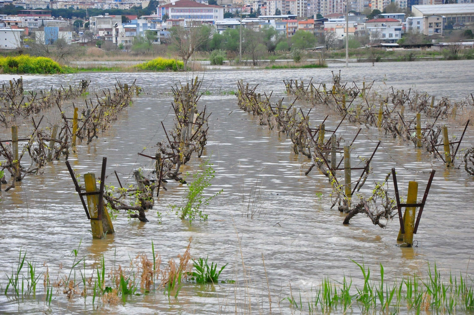 Ersan ERDOĞAN/MANİSA, (DHA)- GEDİZ Nehri'nin taşmasıyla Manisa'da binlerce hektarlık üzüm bağının su altında kalması nedeniyle üreticiler tedirgin oldu. Manisa Bağcılık Araştırma Enstitüsü'nde görevli Ziraat Yüksek Mühendisi Mustafa Sacit İnan, suyun geç çekildiği ağır topraklarda kök çürümesi riskine dikkat çekti.