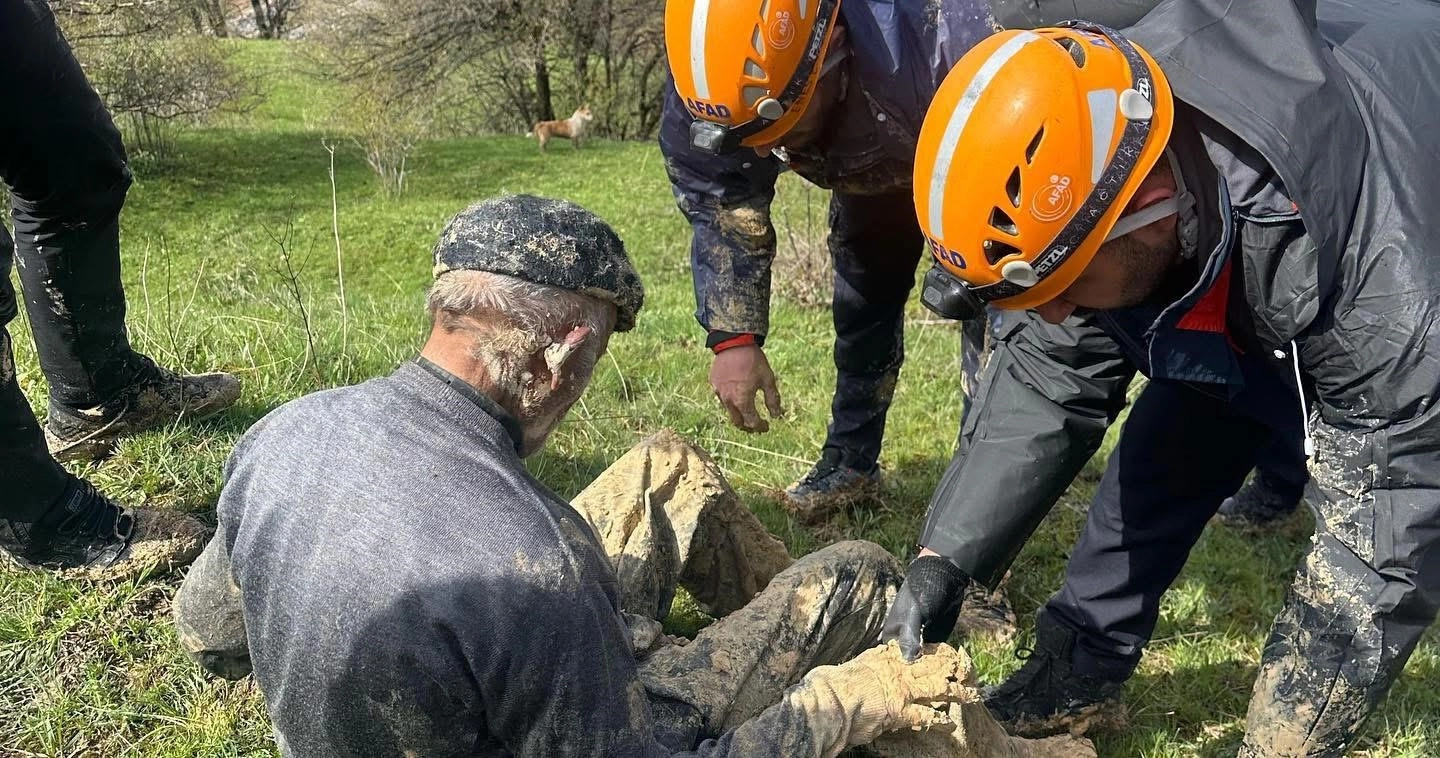 Oğuzhan ÇİFCİ/SUŞEHRİ (Sivas), (DHA)- SİVAS'ın Suşehri ilçesinde ineği ile birlikte çamura saplanan İsmail Ünsal (88), AFAD ekipleri tarafından kurtarıldı.Olay, saat 14.00 sıralarında ilçeye bağlı Kekeç köyünde yaşandı. Köyde ikamet eden İsmail Ünsal'ın ineği Hamam mezrası Abdurrahmanlar mevkisinde sağanak yağış sonrası arazide oluşan çamura saplandı. İneği kurtarmak isteyen Ünsal da girdiği çamurda mahsur kaldı. İhbar üzerine bölgeye jandarma ve AFAD personeli sevk edildi. AFAD ekipleri tarafından uzun uğraşlar sonucu Ünsal ve ineği mahsur kaldıkları çamurdan kurtarıldı. AFAD ekibinin sırtlarında taşıdığı Ünsal, sağlık ekipleri tarafından ambulansla Suşehri Devlet Hastanesine kaldırılarak tedavi altına alındı. (DHA)