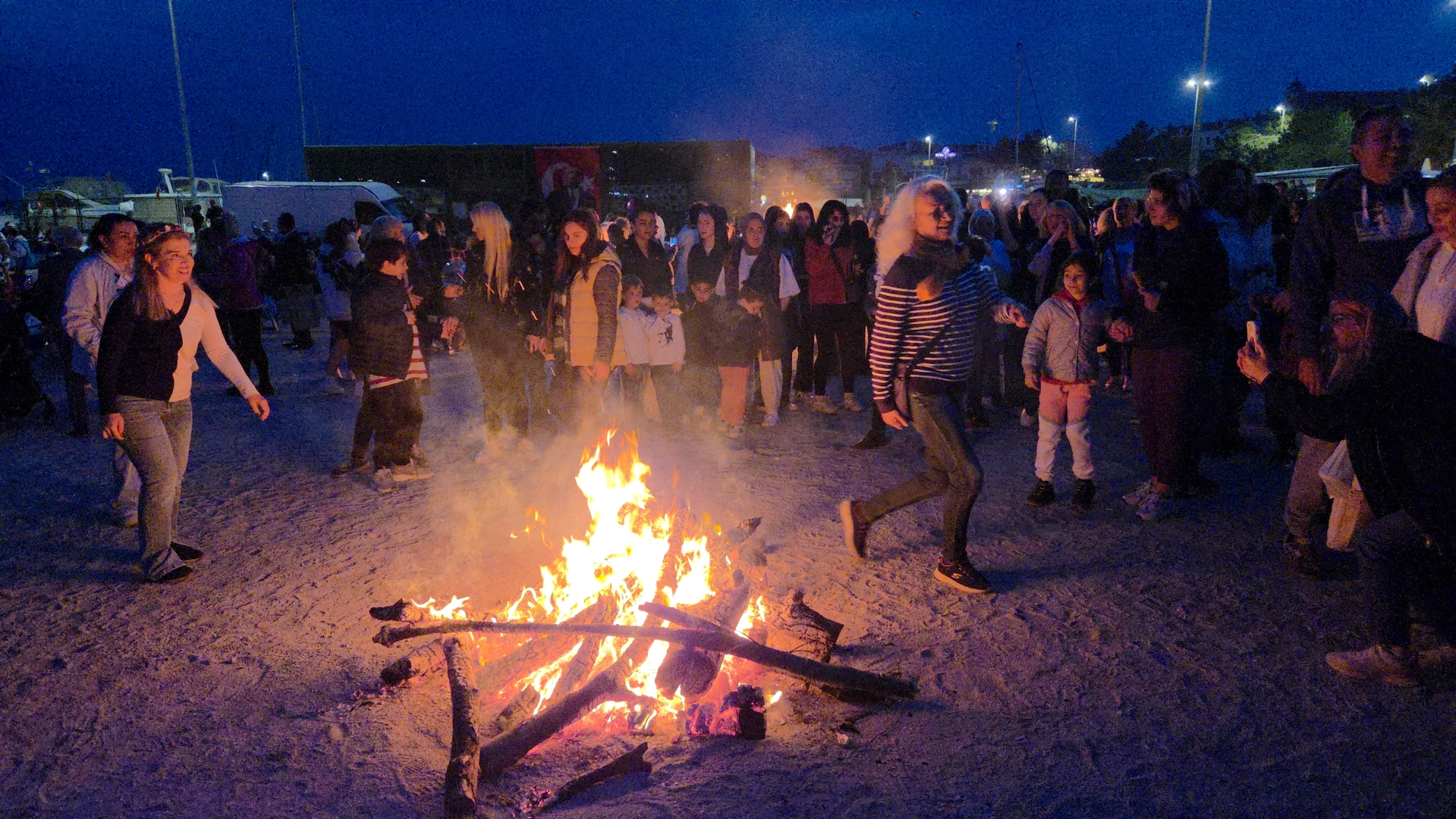 Vehbi DEMİR / İSTANBUL,(DHA) - BAKIRKÖY'deki Yeşilköy Sahili'nde baharın müjdecisi olarak kabul edilen Hıdırellez için yüzlerce mahalle sakini bir araya geldi. Şenlikte katılımcılar dilek tutarak ateşin üzerinden atladı. Yeşilköy Sahili'nde baharın müjdecisi olarak kabul edilen Hıdırellez için yüzlerce mahalle sakini bir araya geldi. Şenlikte kimi katılımcılar şarkılar eşliğinde dans ederken, kimisi de kamp sandalyelerine oturarak gecenin keyfini çıkardı. Havanın kararmasıyla yakılan ateşin etrafında toplanan katılımcılar, dilek tutarak 3 kez ateşin üzerinden atladı.'MAHALLE SAKİNLERİYLE DOSTLUĞUMUZU PEKİŞTİRMEK İSTİYORUZ'Şenliği düzenleyenlerden biri olan Umut Çarpan, "Mahalleden gelen dostluk' adına böyle bir etkinliğe kalmıştık. Yaklaşık 14 yıldır tamamen mahallelinin herhangi bir destek almadan kendi inisiyatif ile düzenlemiş olduğu bir etkinlik. Mahalle halkımızla dostluğumuzu pekiştirmek istiyoruz. Herkesi baharın gelişiyle dileklerin kabul için ateşlerimizi yakıyoruz" dedi. (DHA)