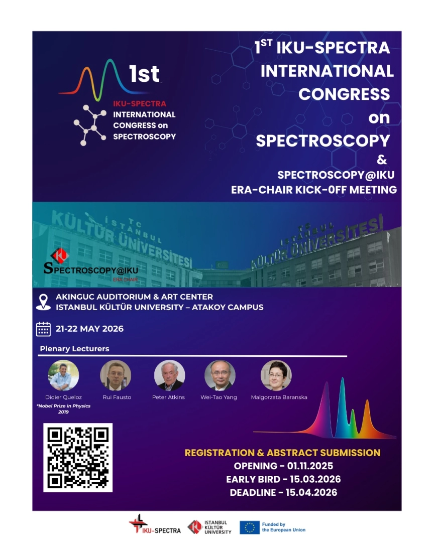 İSTANBUL, (DHA)- İSTANBUL Kültür Üniversitesi (İKÜ) ev sahipliğinde, 21–22 Mayıs tarihlerinde düzenlenecek IKU-SPECTRA Uluslararası Spektroskopi Kongresi, bilim insanlarını, kamu ve sanayi temsilcilerini İstanbul’da buluşturacak. Kongre, aynı zamanda Avrupa Birliği Horizon Europe Wıdera Era-Chaırs Programı kapsamında desteklenen Spectroscopy IKU ERA-Chair Projesi’nin lansman (kick-off) etkinliği niteliğini taşıyor.