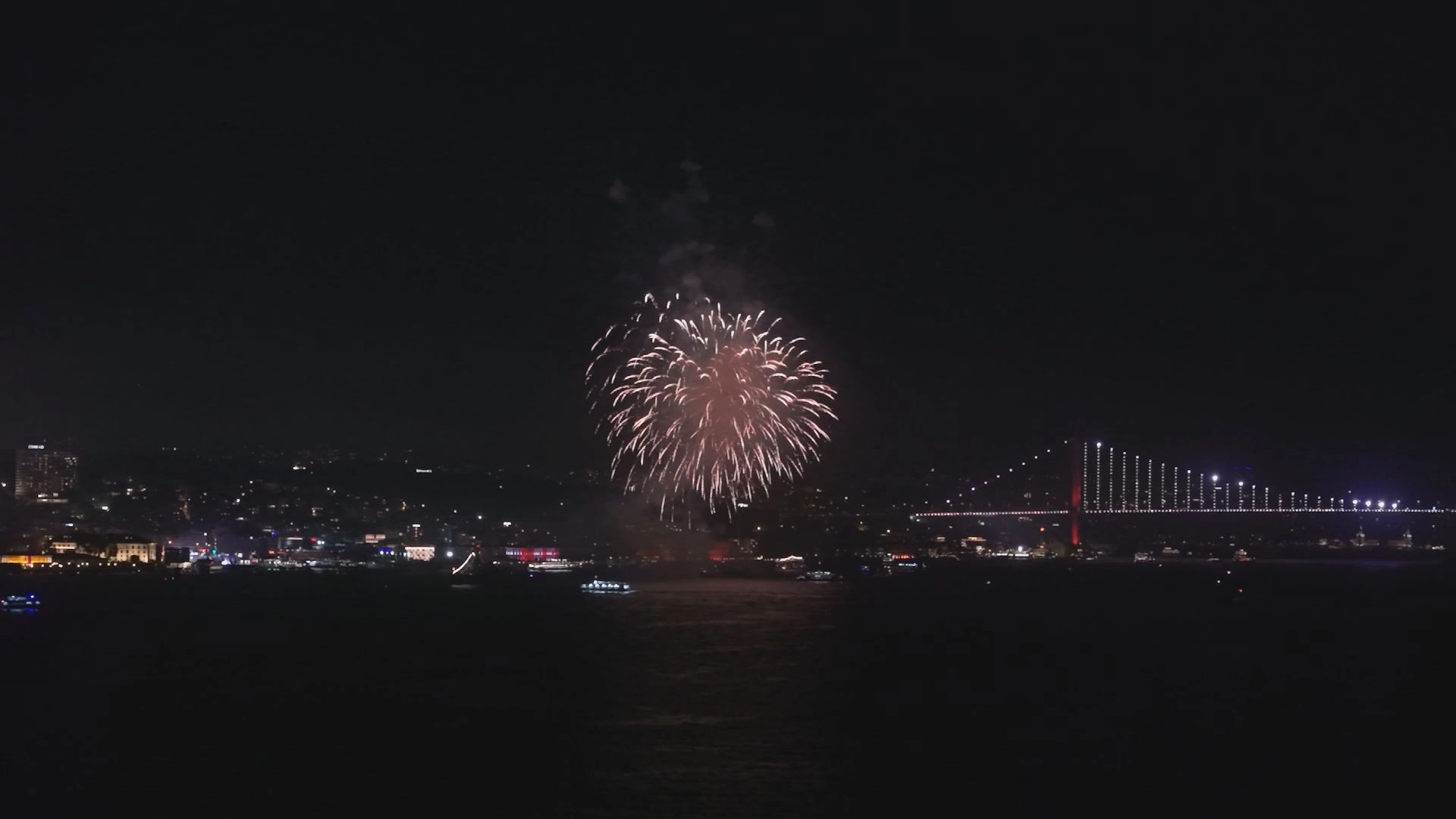 Cumhuriyetin 102'nci yılı kutlamaları kapsamında İstanbul Boğazı'nda havai fişek gösterisi yapıldı. 29 Ekim Cumhuriyet Bayramı dolayısıyla havai fişeklerle İstanbul Boğaz'ında görsel şölen oluştu. (DHA)