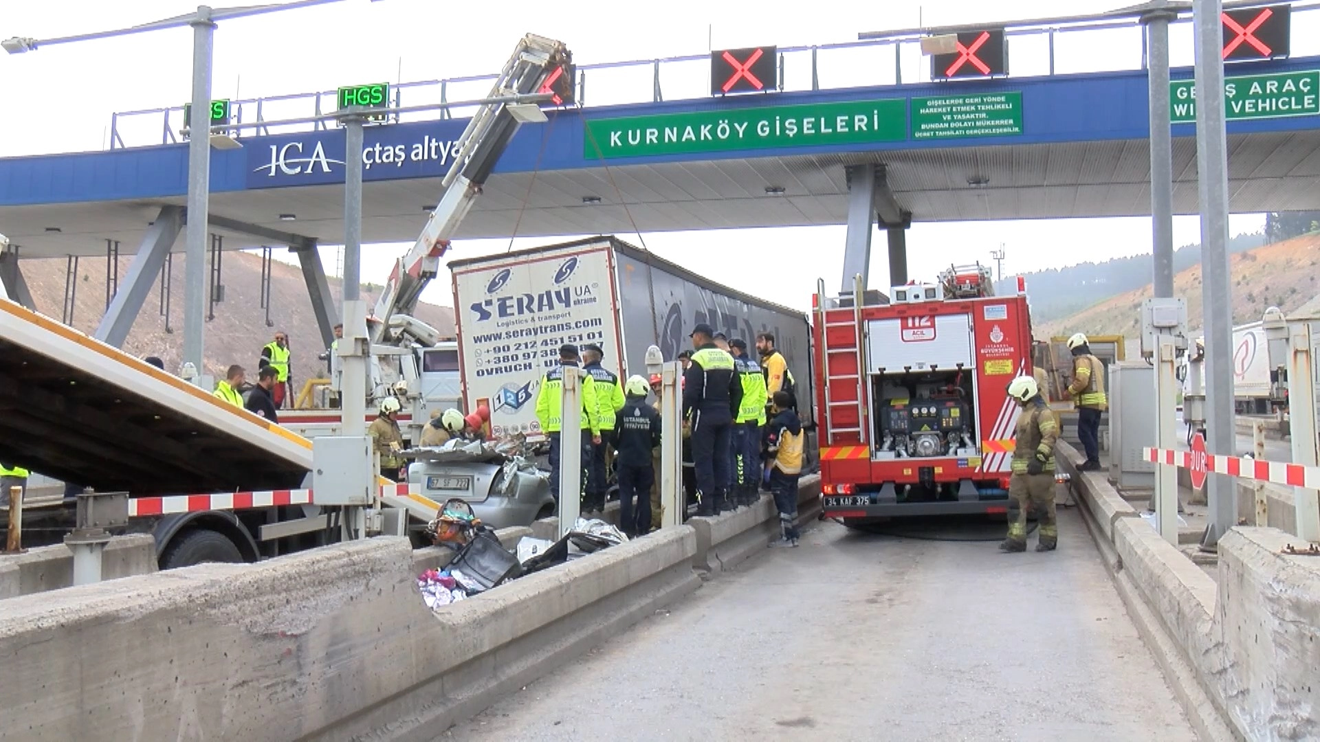 Vehbi DEMİR - Özcan KILIÇ / İSTANBUL (DHA) PENDİK Kuzey Marmara Otoyolu Kurnaköy gişelerinde hızla gelen otomobil TIR'ın altına girdi. Kazada hayatını kaybeden 4 kişinin cenazesi otopsi için Adli Tıp Kurumu Morguna götürüldü. Teşhis için yakınlarından DNA örneği alınan cenazeler, işlemlerinin tamamlanmasının ardından toprağa verilmek üzere Zonguldak ve Düzce'ye gönderilecek.Kaza Cumartesi günü saat 10.00 sıralarında Kuzey Marmara Otoyolu Kurnaköy gişeleri Ankara istikametinde meydana geldi. Edinilen bilgiye göre, hızla ilerleyen 67 SF 722 plakalı otomobil, gişelerde ödeme yapmak için duran AM 1689 HP plakalı TIR'ın altına girdi. İhbar üzerine olay yerine polis, itfaiye ve sağlık ekipleri sevk edildi. Sağlık ve itfaiye ekiplerince otomobilden çıkarılan Sadi Tanberk (69), Ayşen Yıldız Tanberk (73), Vahide Kalyoncu (63), Özgür Yıldız'ın (59) olay yerinde hayatını kaybettiği belirlendi. Otomobildeki cenazeler ekiplerin yaklaşık 1 saat süren çalışması sonucunda otomobilden çıkarılarak Adli Tıp Kurumu Morguna kaldırıldı. TIR'ın altından çıkarılan otomobil ise kullanılamaz hale geldi.UMMAN'DAN TATİLDEN DÖNDÜLERRamazan Bayramı tatili nedeniyle geçtiğimiz hafta Zonguldak Ereğli'den Umman'a gezmeye giden öğretmen Vahide Kalyoncu(63) ile öğretmen Özgür Yıldız'ın (59) tatil dönüşü havalimanına bıraktıkları otomobilleriyle karı koca olan Ayşen Yıldız Tanberk (73) ve Sadi Tanberk'i de yanlarına alarak Düzce'ye gitmek için yola çıktıkları öğrenildi.CENAZELER ADLİ TIP KURUMU'NDA Diğer yandan otopsi için Adli Tıp Kurumu Morguna götürülen cenazelerin yakınlarından teşhis için DNA örneği alındı. Yakınları Adli Tıp Kurumu önünde bekleyen Vahide Kalyoncu'nun cenazesinin işlemlerinin ardından Zonguldak'a, Sadi Tanberk ve eşi Ayşen Yıldız Tanberk ile kardeşi Özgür Yıldız'ın cenazelerinin ise Düzce'ye gönderileceği öğrenildi.Diğer yandan Özgür Yıldız ve Ayşen Yıldız Tanberk'in CHP Ankara milletvekili Okan Konuralp'in kuzenleri olduğu öğrenildi.(DHA)