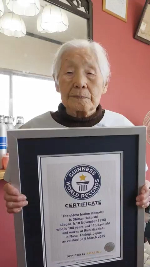 JAPONYA, (DHA) - JAPONYA'da yaşayan 108 yaşındaki Hakoişi Şitsui, ‘dünyanın çalışan en yaşlı kadın berberi’ olarak Guinness Dünya Rekorları'na girdi.Japonya'daki Toçigi eyaletinde berberlik yapan 108 yaşındaki Hakoişi Şitsui, ‘dünyanın çalışan en yaşlı kadın berberi’ ünvanını kazandı. Guinness Dünya Rekorları tarafından yapılan açıklamada, “Hakoişi Şitsui, 108 yaşında ve hala saç kesiyor” denildi. Toçigi'nin Nakagawa bölgesinde 1912'de doğan Hakoişi, başkent Tokyo'daki bir kuaförde 14 yaşındayken çıraklığa başladı. 1936'da berberlik lisansını alan Hakoişi'nin eşiyle açtığı berber dükkanı, İkinci Dünya Savaşı sırasında yıkıldı. Guinness Dünya Rekorları sertifikasını komşularının ve müşterilerinin katıldığı törende alan Hakoişi, yaptığı konuşmada "İnsanlar beni görmek için uzaklardan geliyor, bu yüzden elimden geldiğince mesleğime devam etmek istiyorum" dedi.GÖRÜNTÜ DÖKÜMÜ------------------------------ Saç kesiminden görüntüler- Berber salonundan görüntüler- Törenin yapıldığı anlar- Genel detaylar