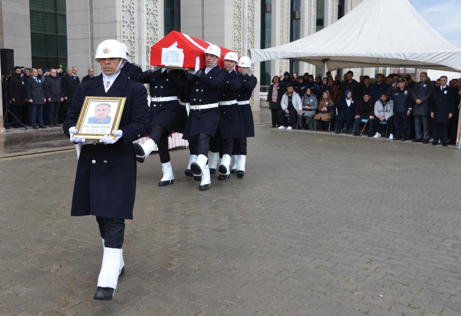 Salih TEKİN/ERZURUM, (DHA)- ERZURUM Emniyet Müdürlüğü Bölge Trafik Şube Müdürlüğü'nde görevli polis memuru Sadık Çalar (54), kanser hastalığı nedeniyle hayatını kaybetti. Çalar’ın cenazesi, düzenlenen törenle memleketi Çankırı'ya uğurlandı.